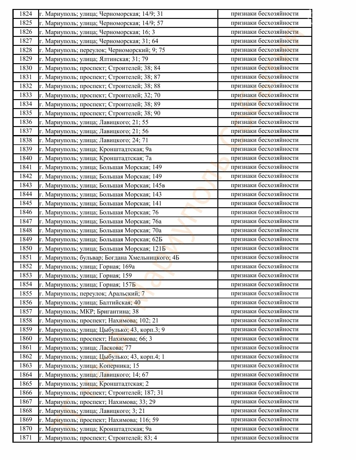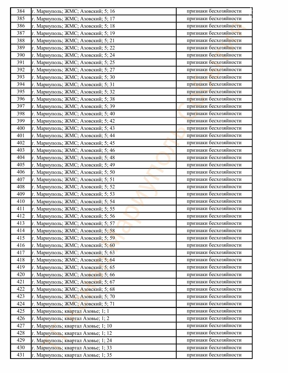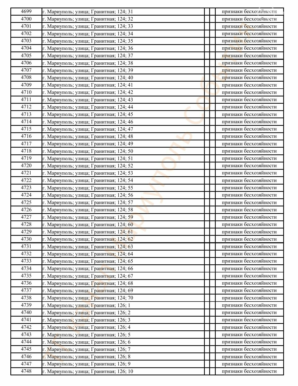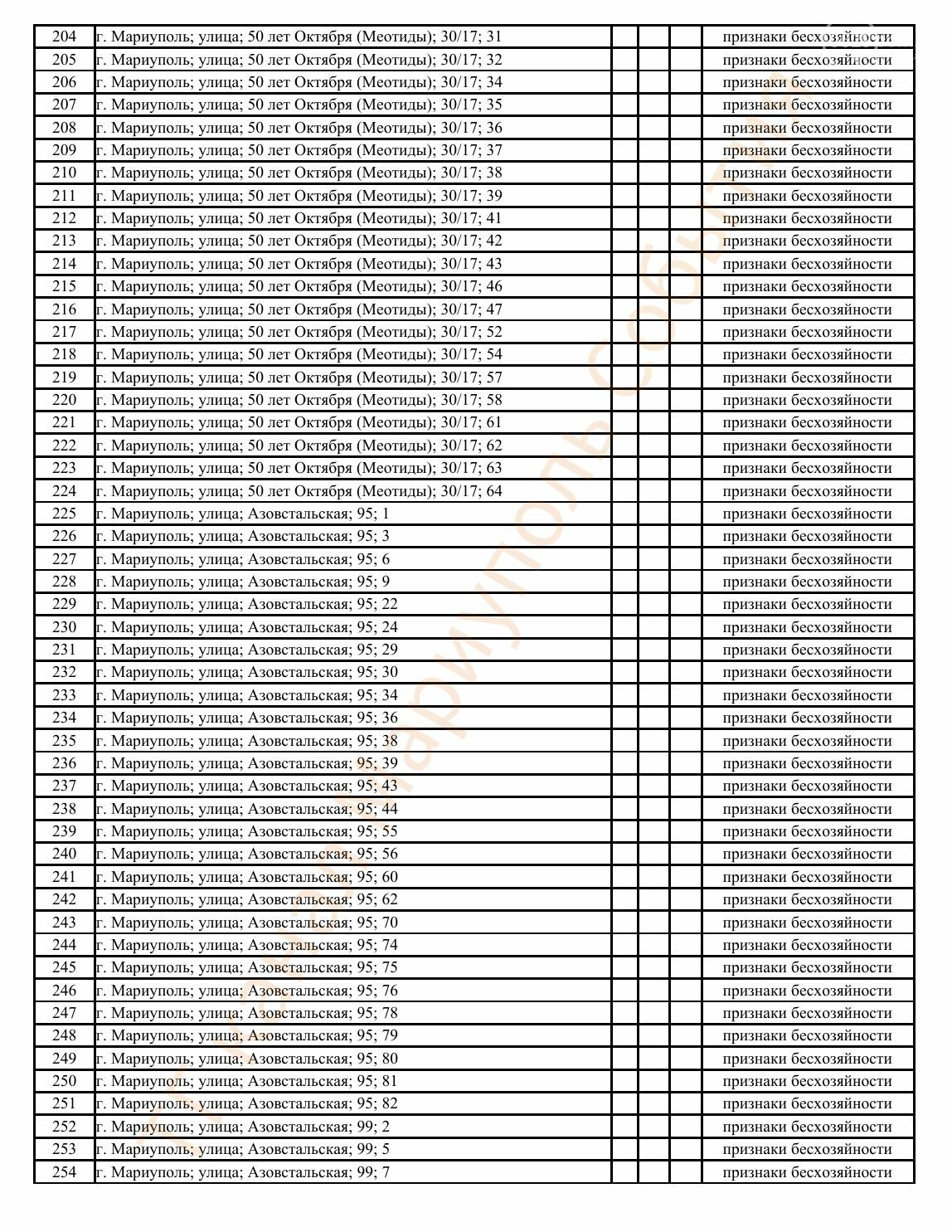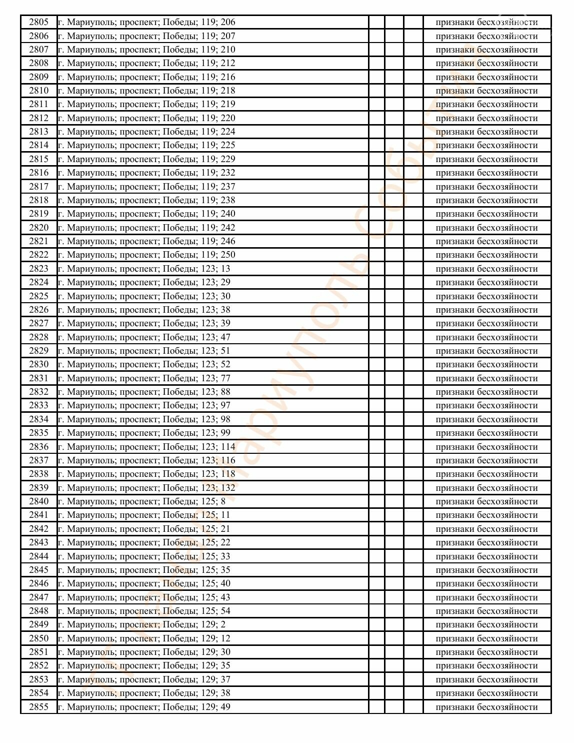 Окупаційна адміністрація Маріуполя оприлюднила черговий перелік нерухомості, яку визнали такою, що «має ознаки безхазяйності». У списку — близько 13 тисяч об’єктів, переважно квартир та житлових приміщень.