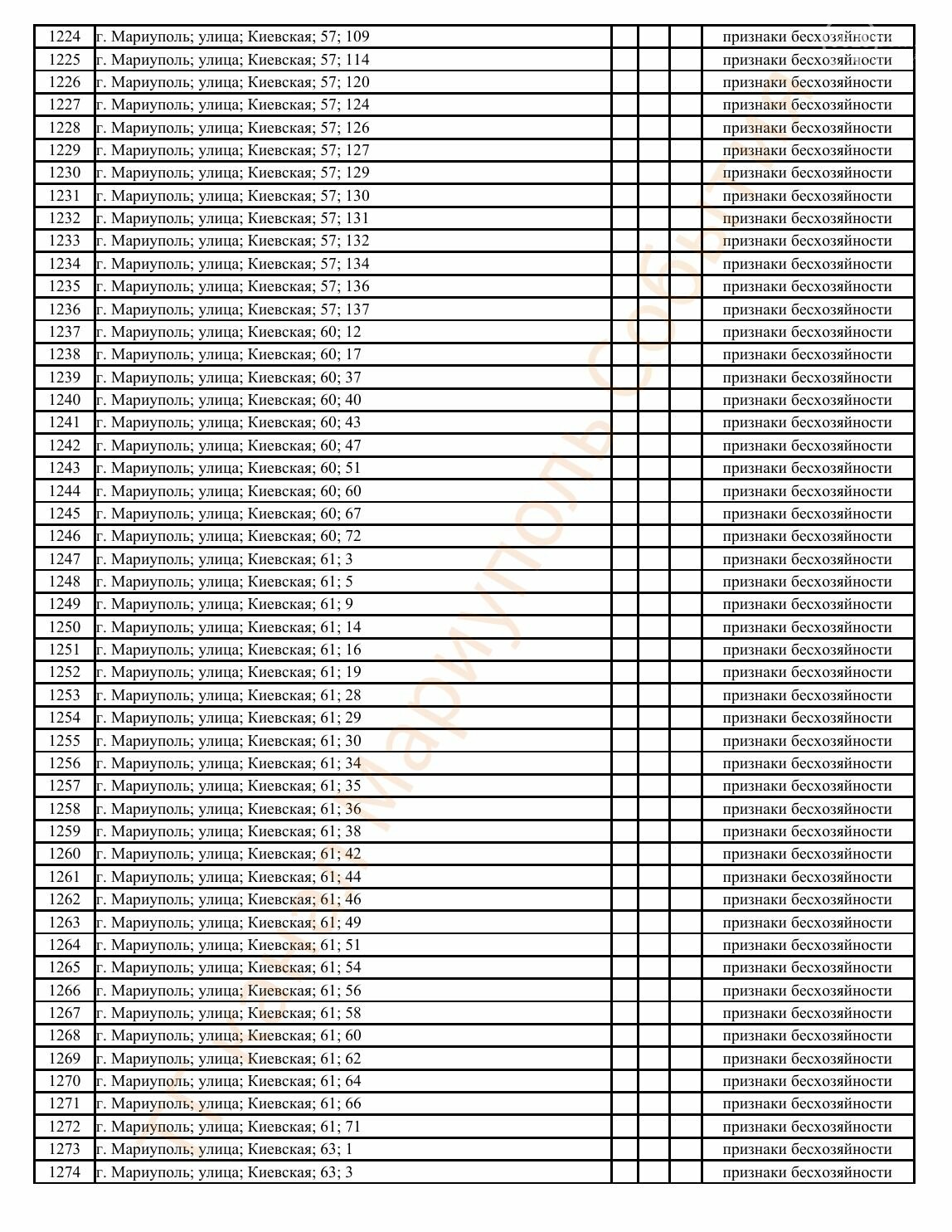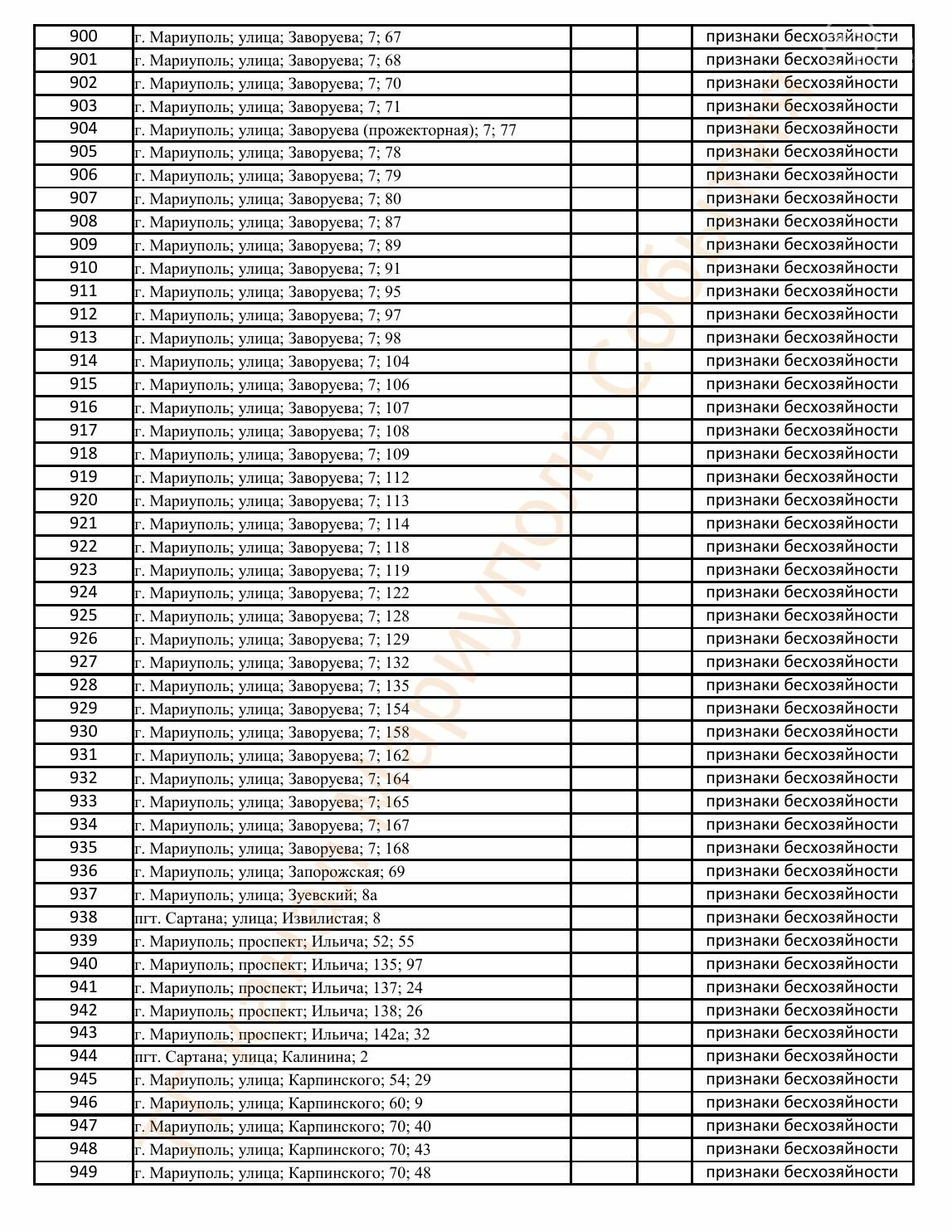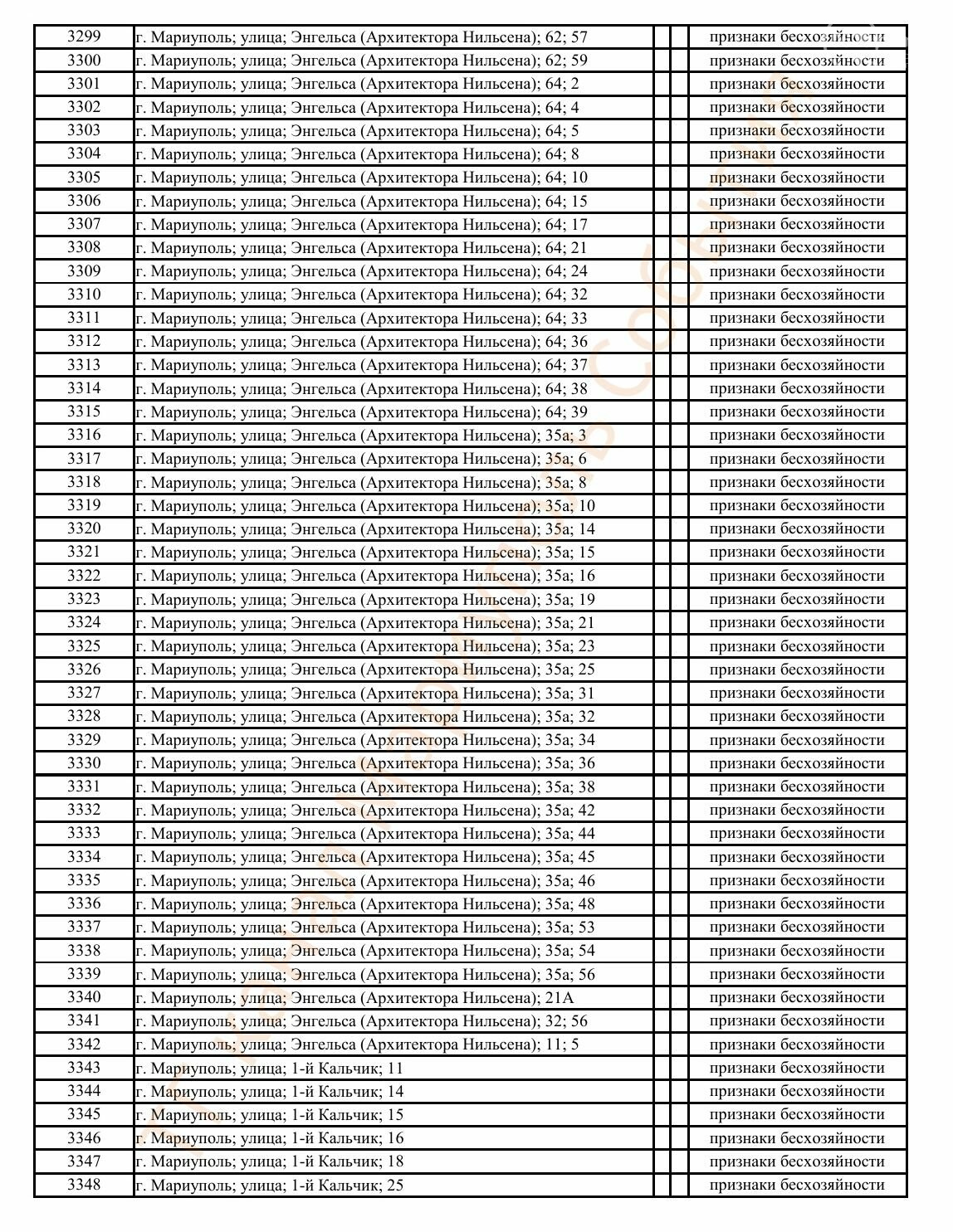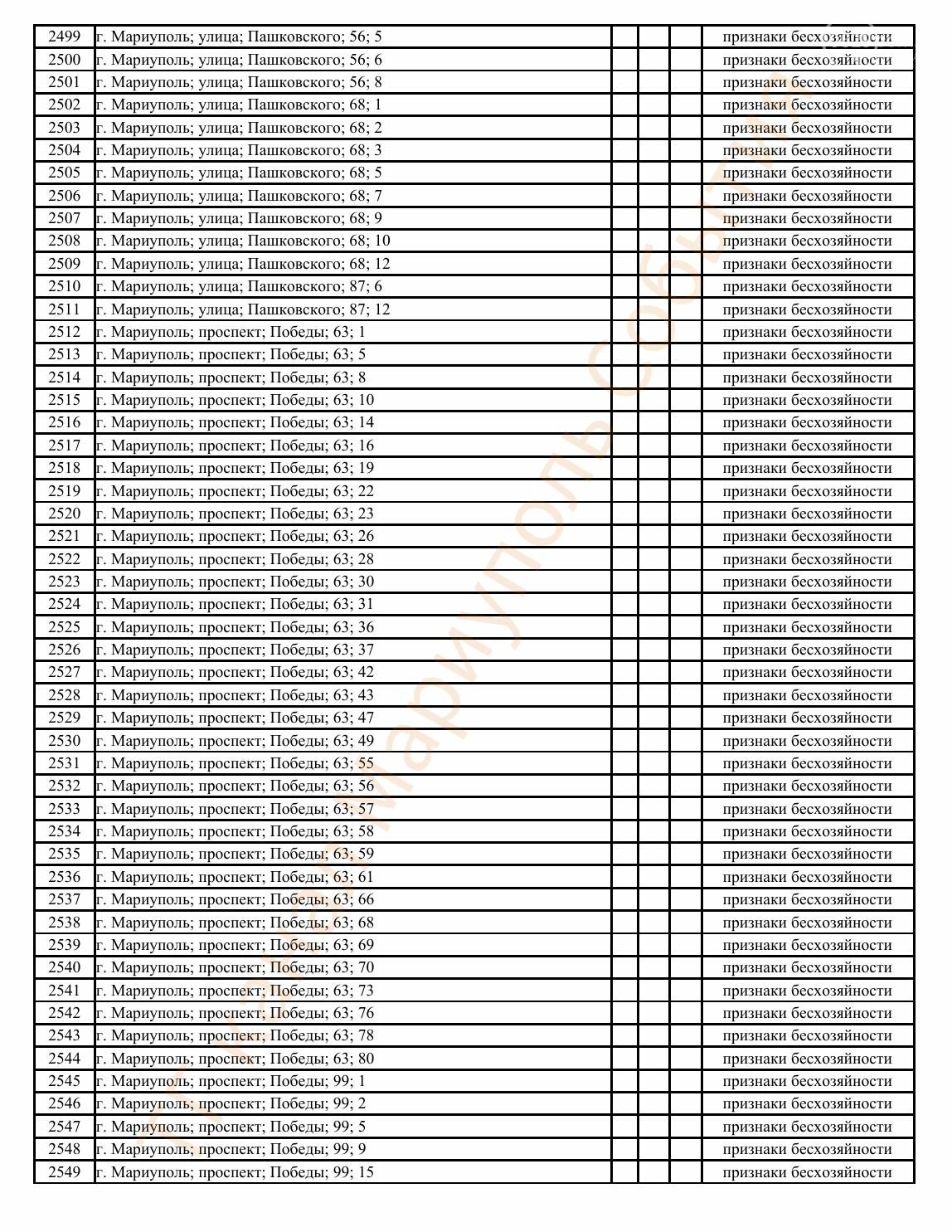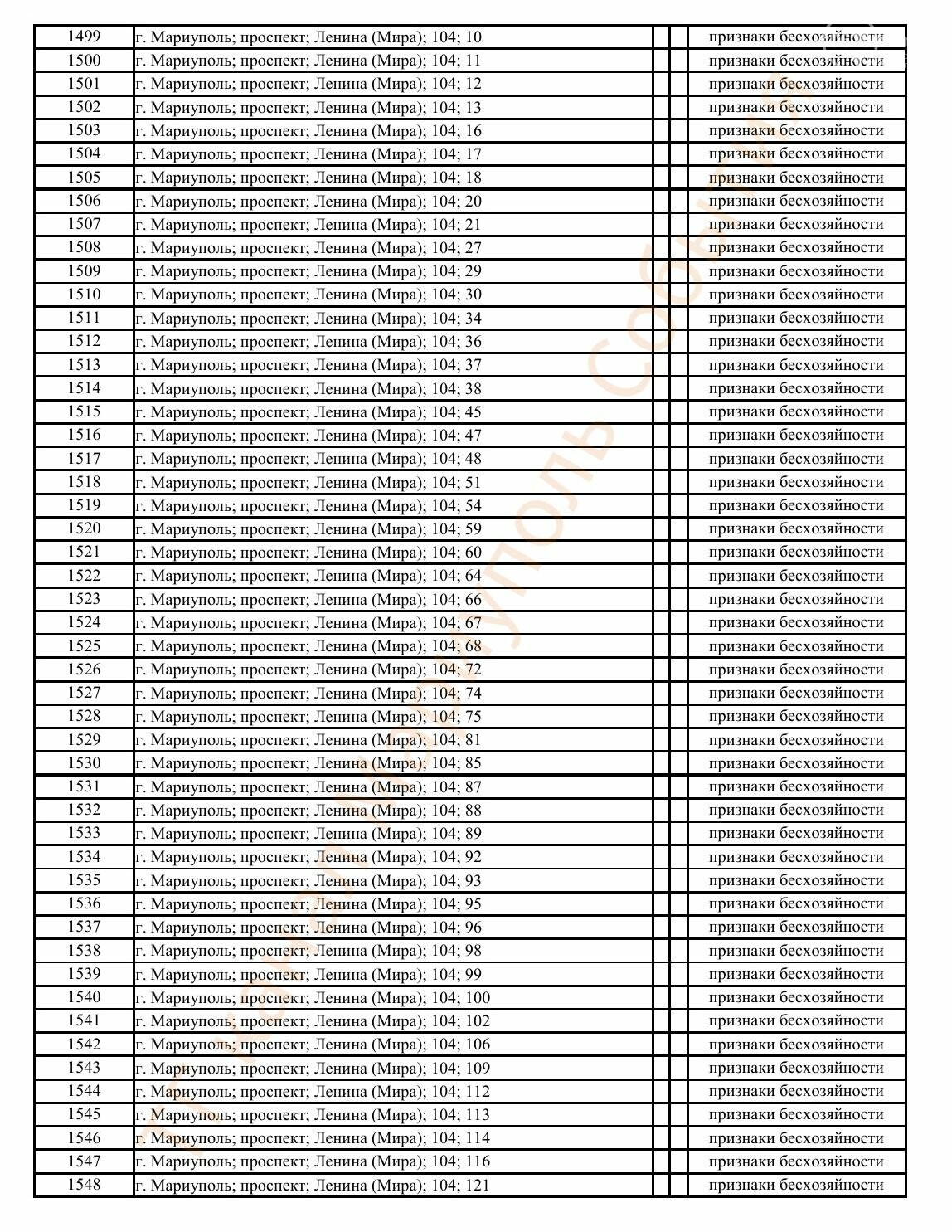 Окупаційна адміністрація Маріуполя оприлюднила черговий перелік нерухомості, яку визнали такою, що «має ознаки безхазяйності». У списку — близько 13 тисяч об’єктів, переважно квартир та житлових приміщень.