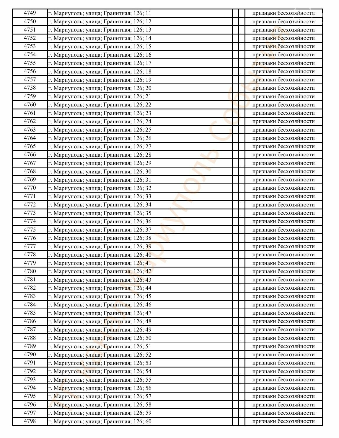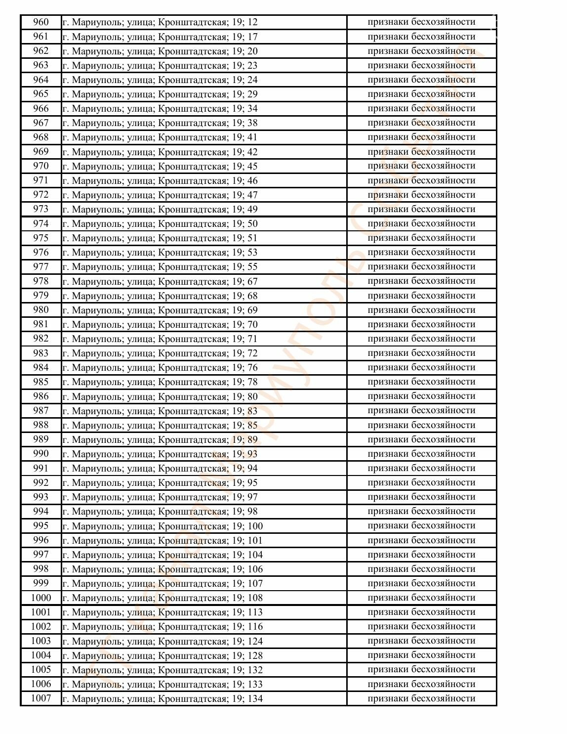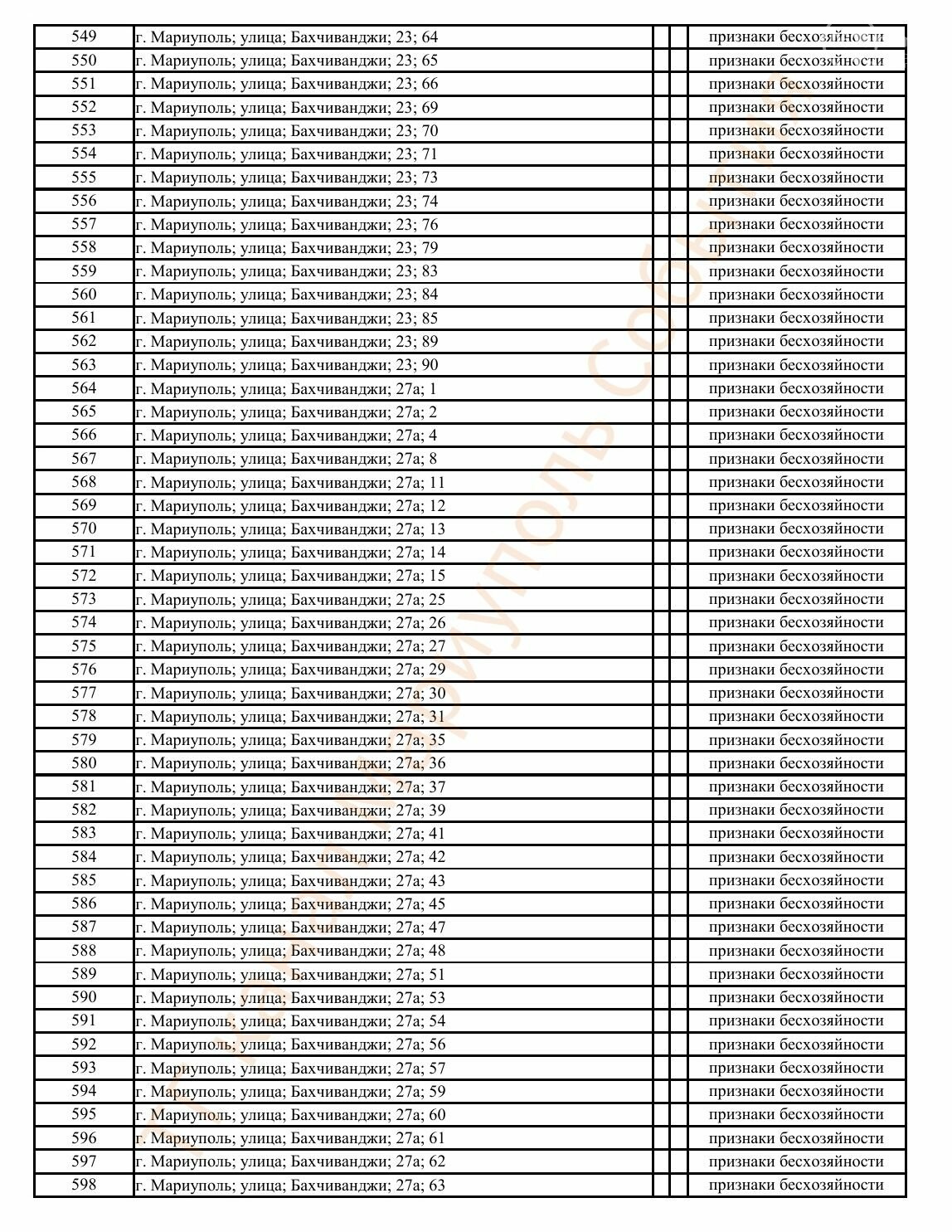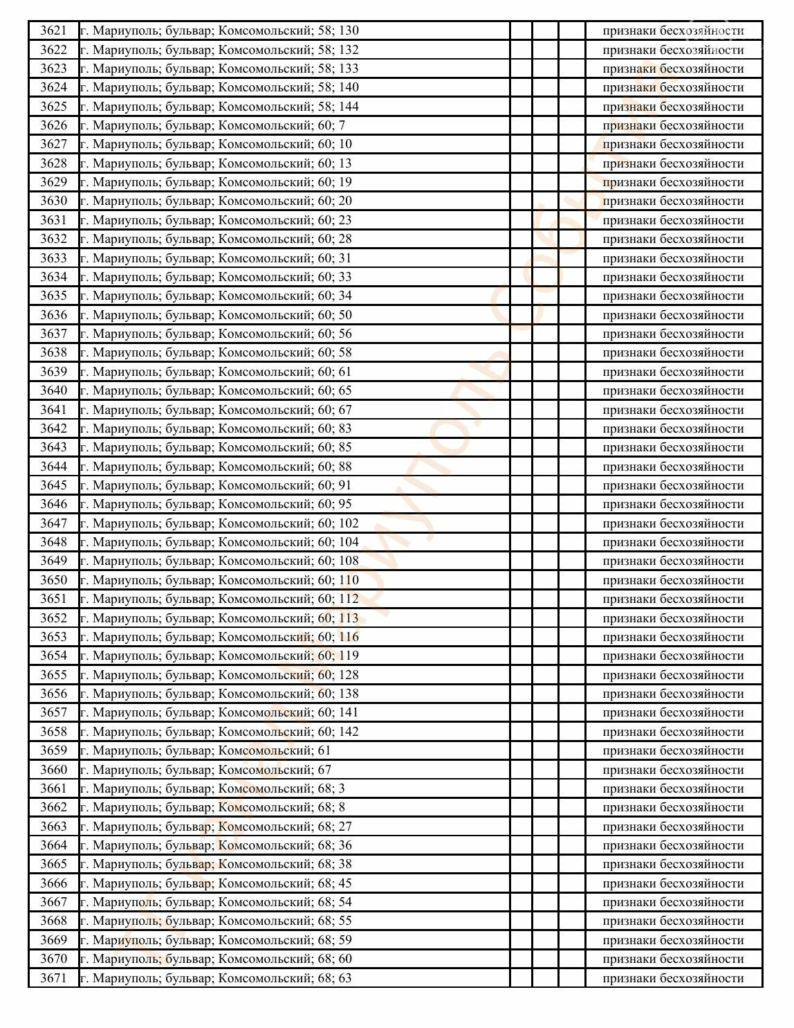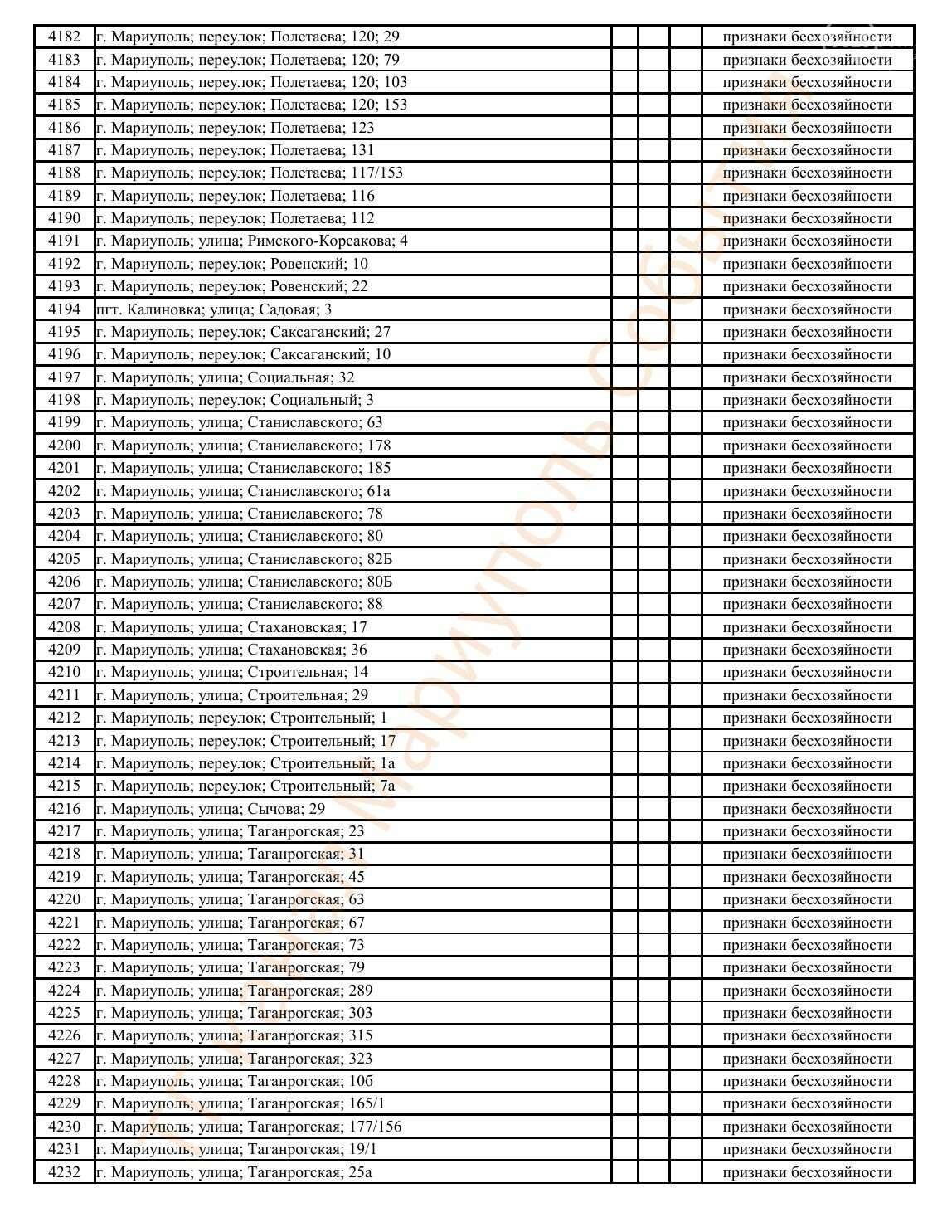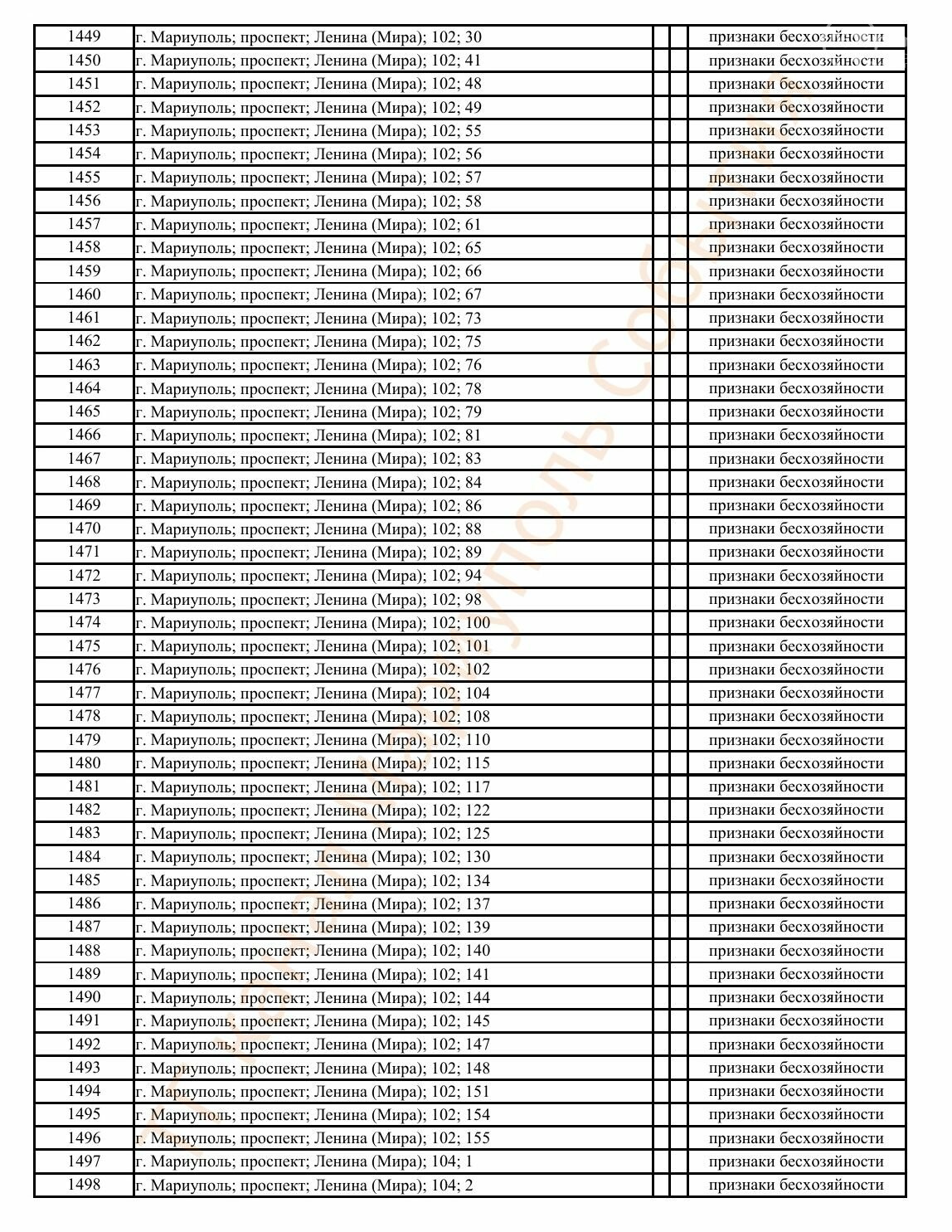 Окупаційна адміністрація Маріуполя оприлюднила черговий перелік нерухомості, яку визнали такою, що «має ознаки безхазяйності». У списку — близько 13 тисяч об’єктів, переважно квартир та житлових приміщень.