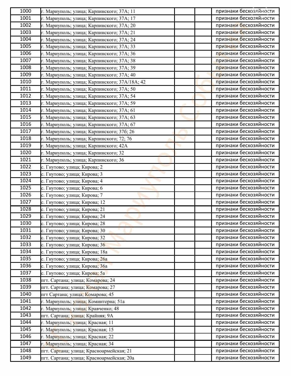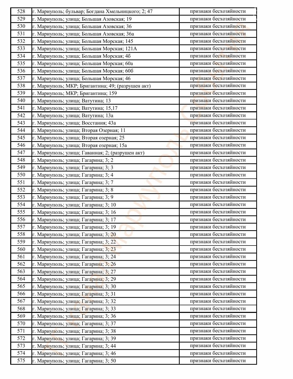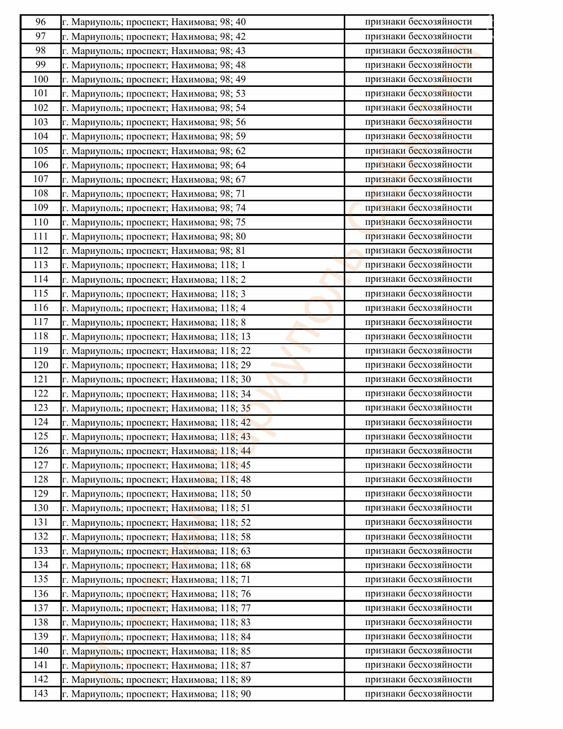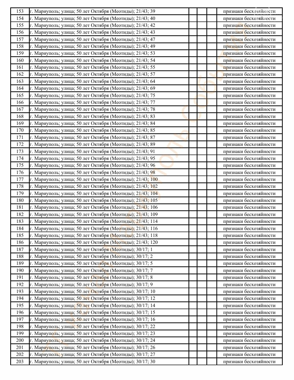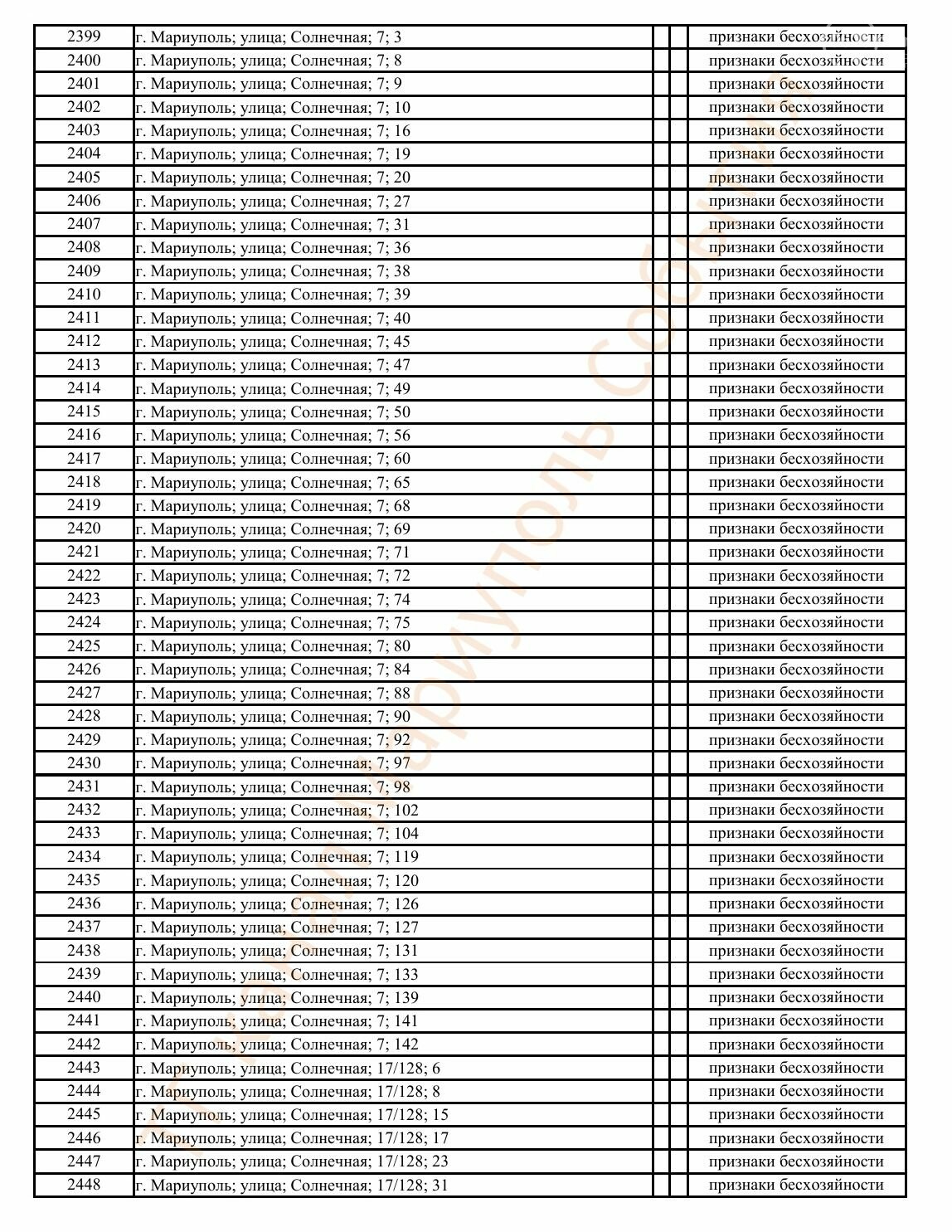 Окупаційна адміністрація Маріуполя оприлюднила черговий перелік нерухомості, яку визнали такою, що «має ознаки безхазяйності». У списку — близько 13 тисяч об’єктів, переважно квартир та житлових приміщень.