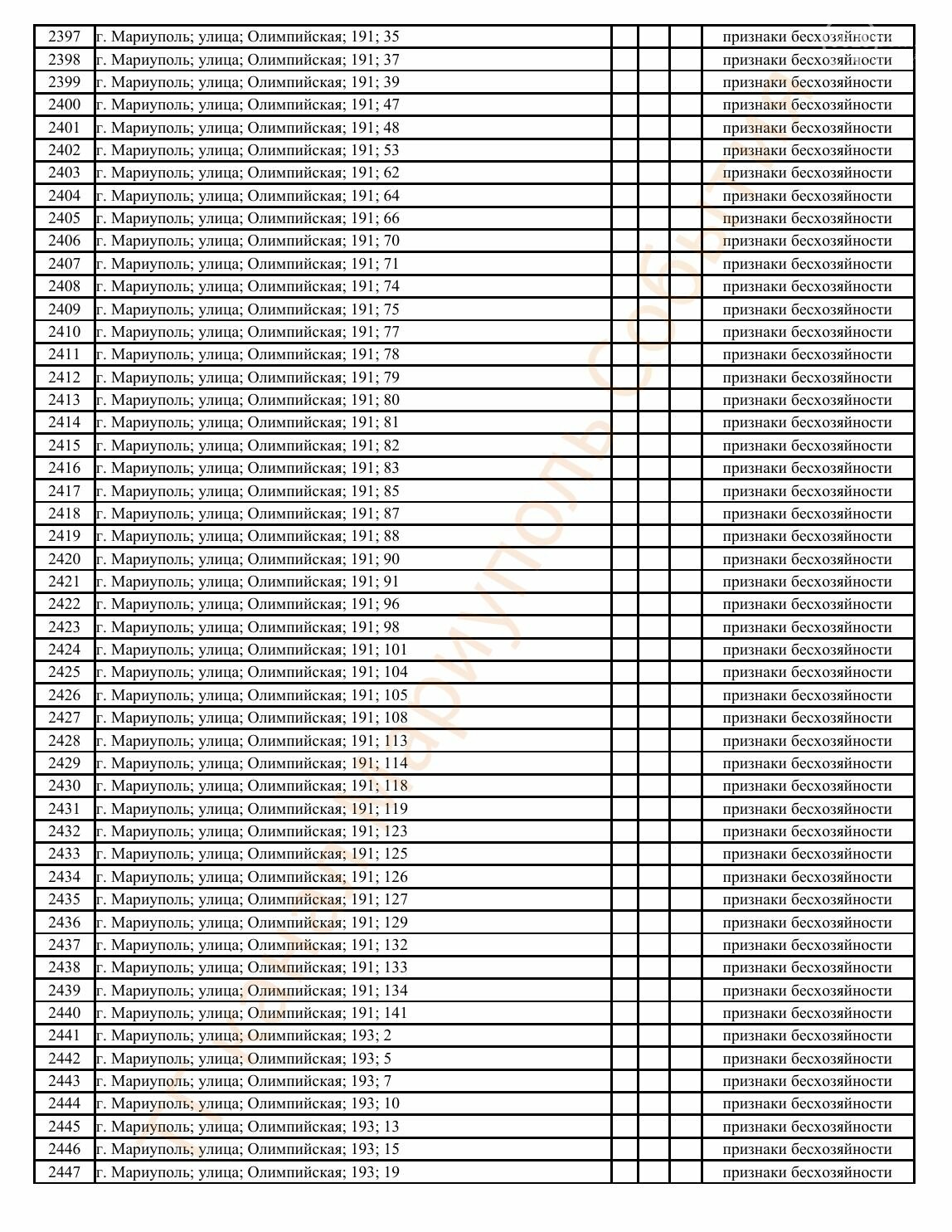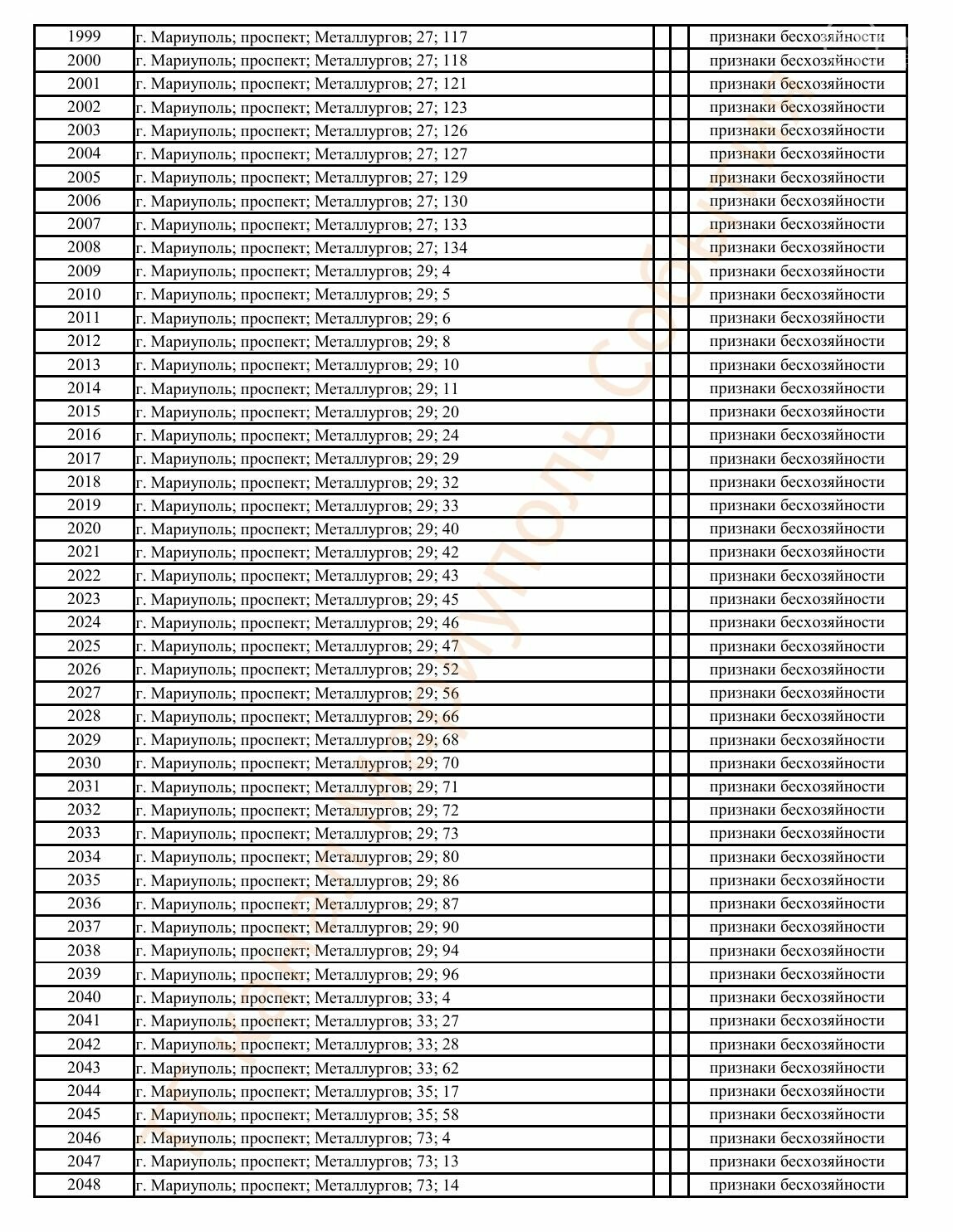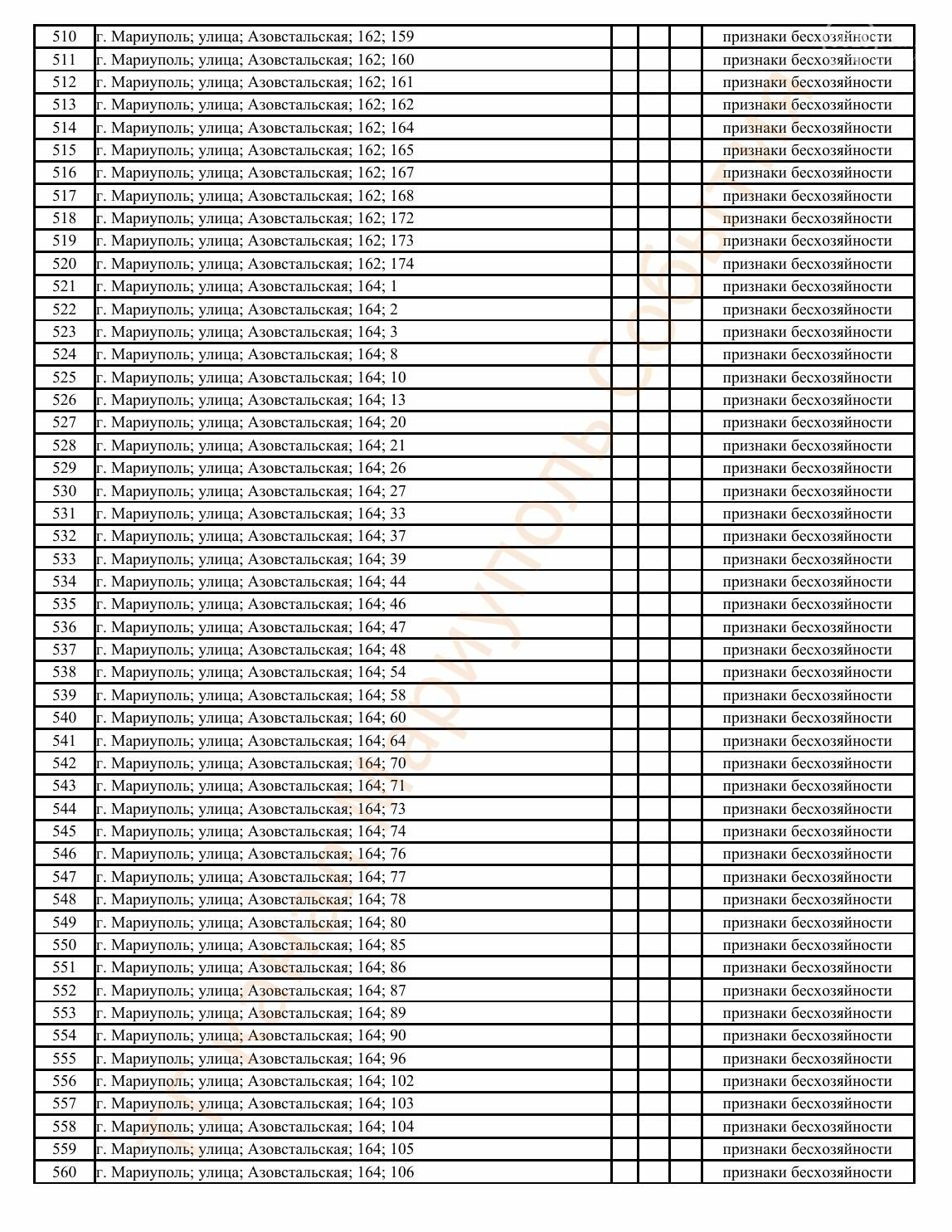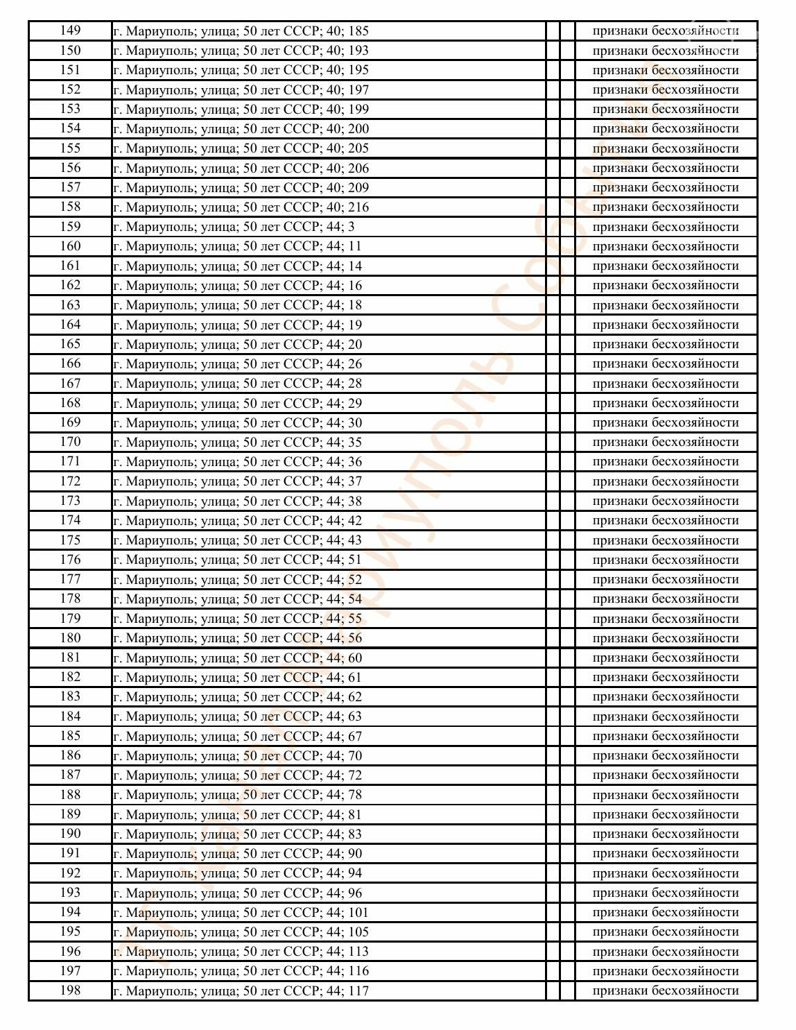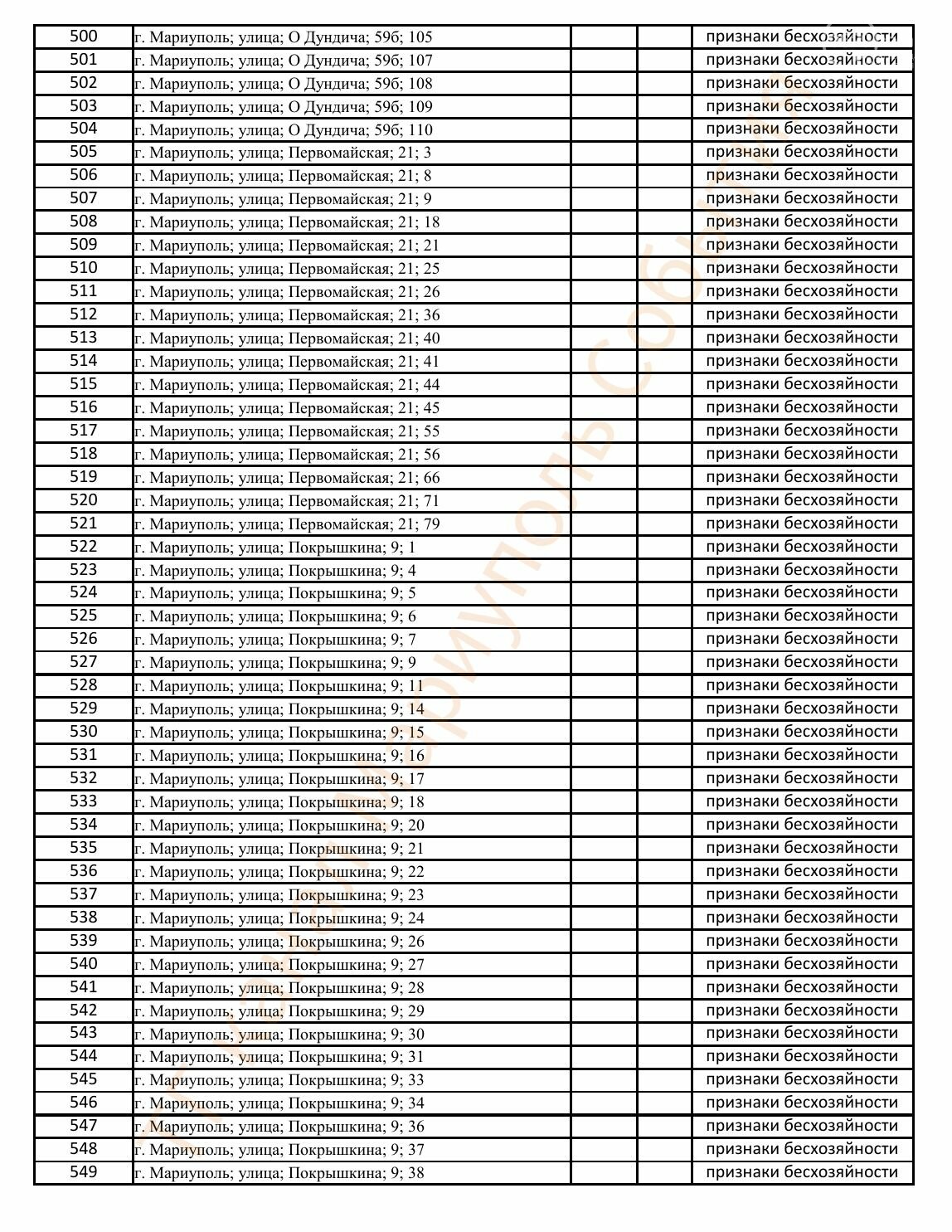 Окупаційна адміністрація Маріуполя оприлюднила черговий перелік нерухомості, яку визнали такою, що «має ознаки безхазяйності». У списку — близько 13 тисяч об’єктів, переважно квартир та житлових приміщень.