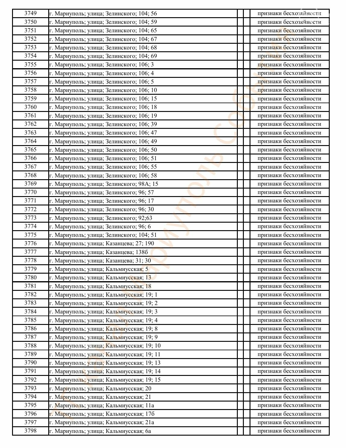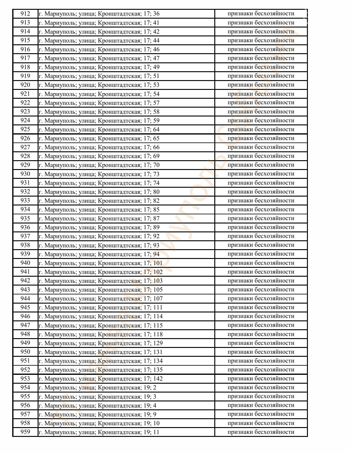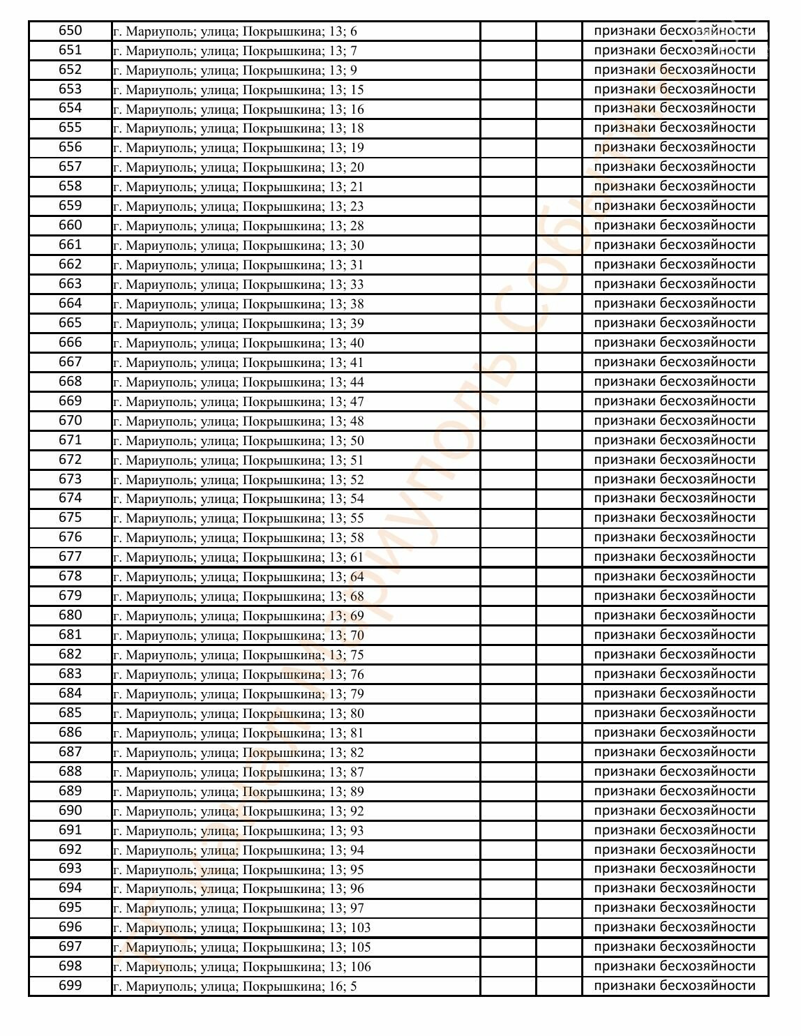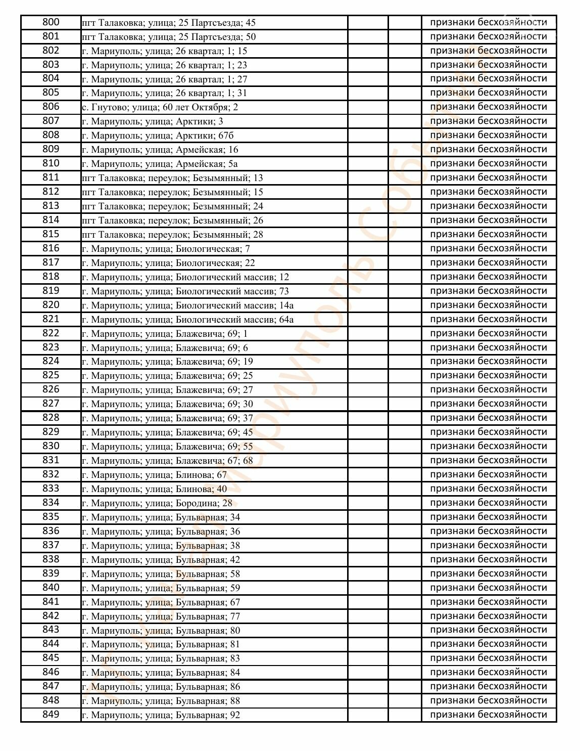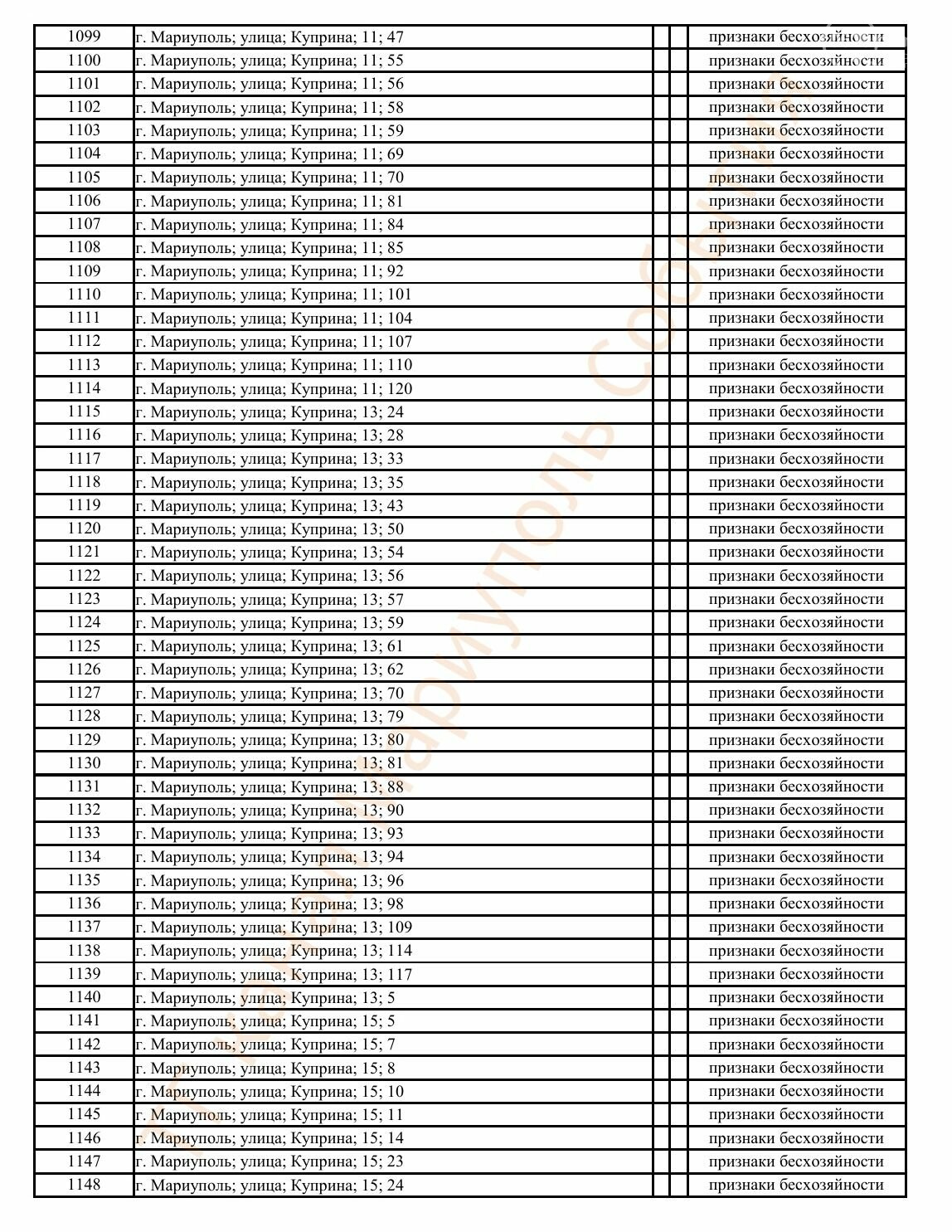 Окупаційна адміністрація Маріуполя оприлюднила черговий перелік нерухомості, яку визнали такою, що «має ознаки безхазяйності». У списку — близько 13 тисяч об’єктів, переважно квартир та житлових приміщень.