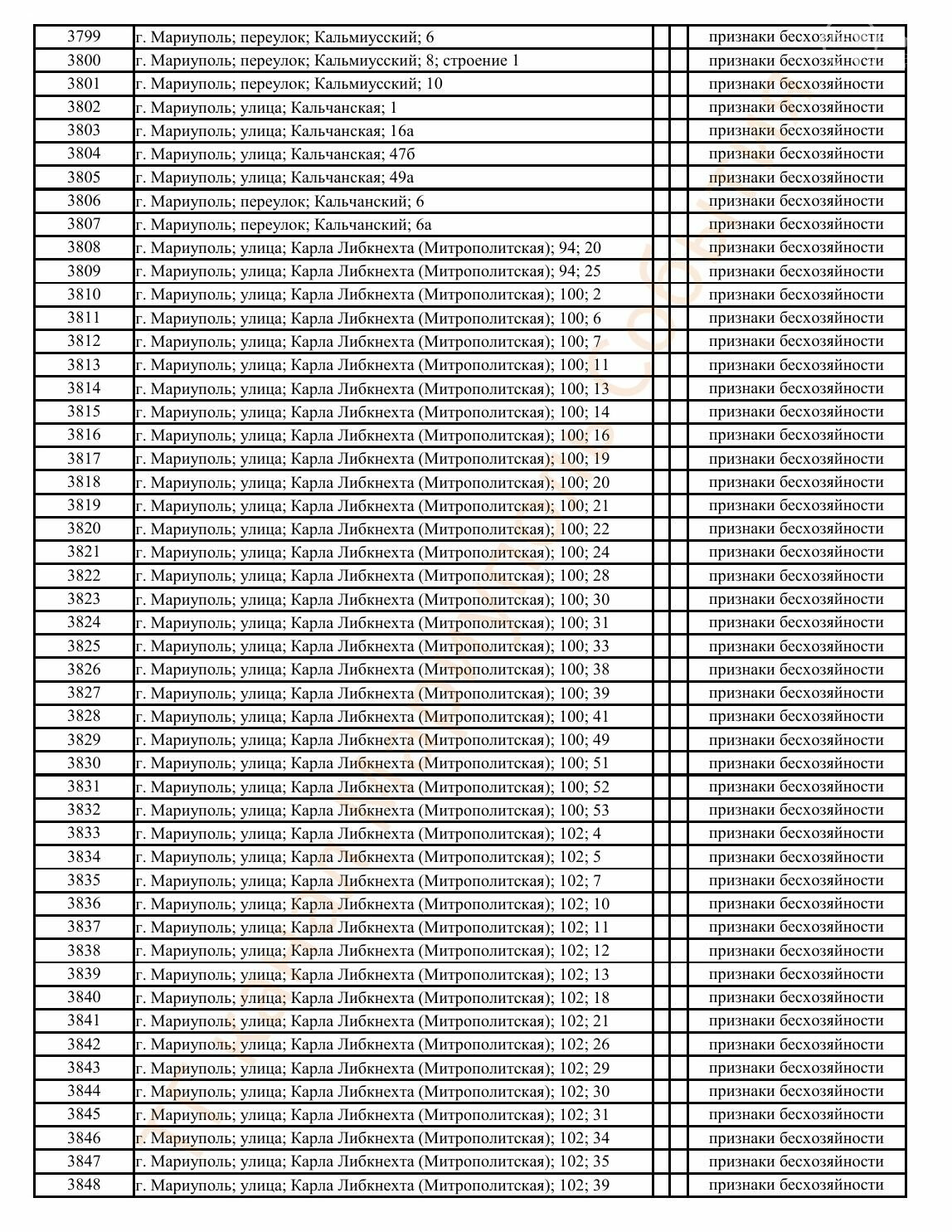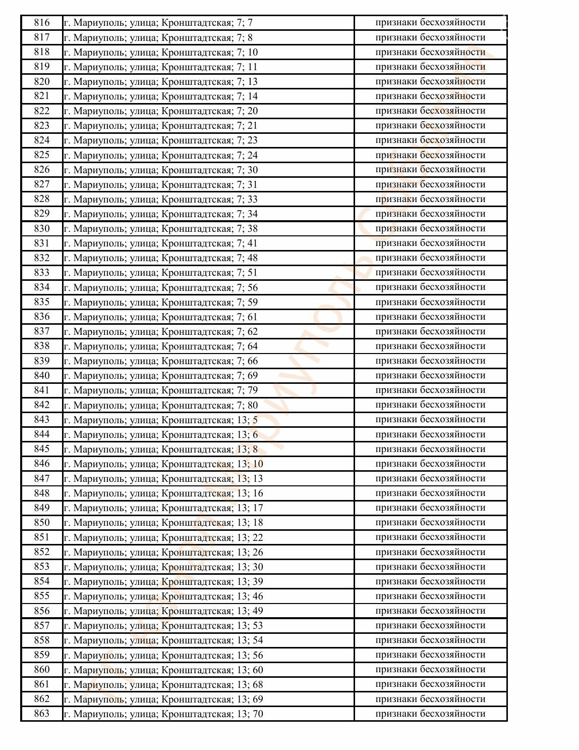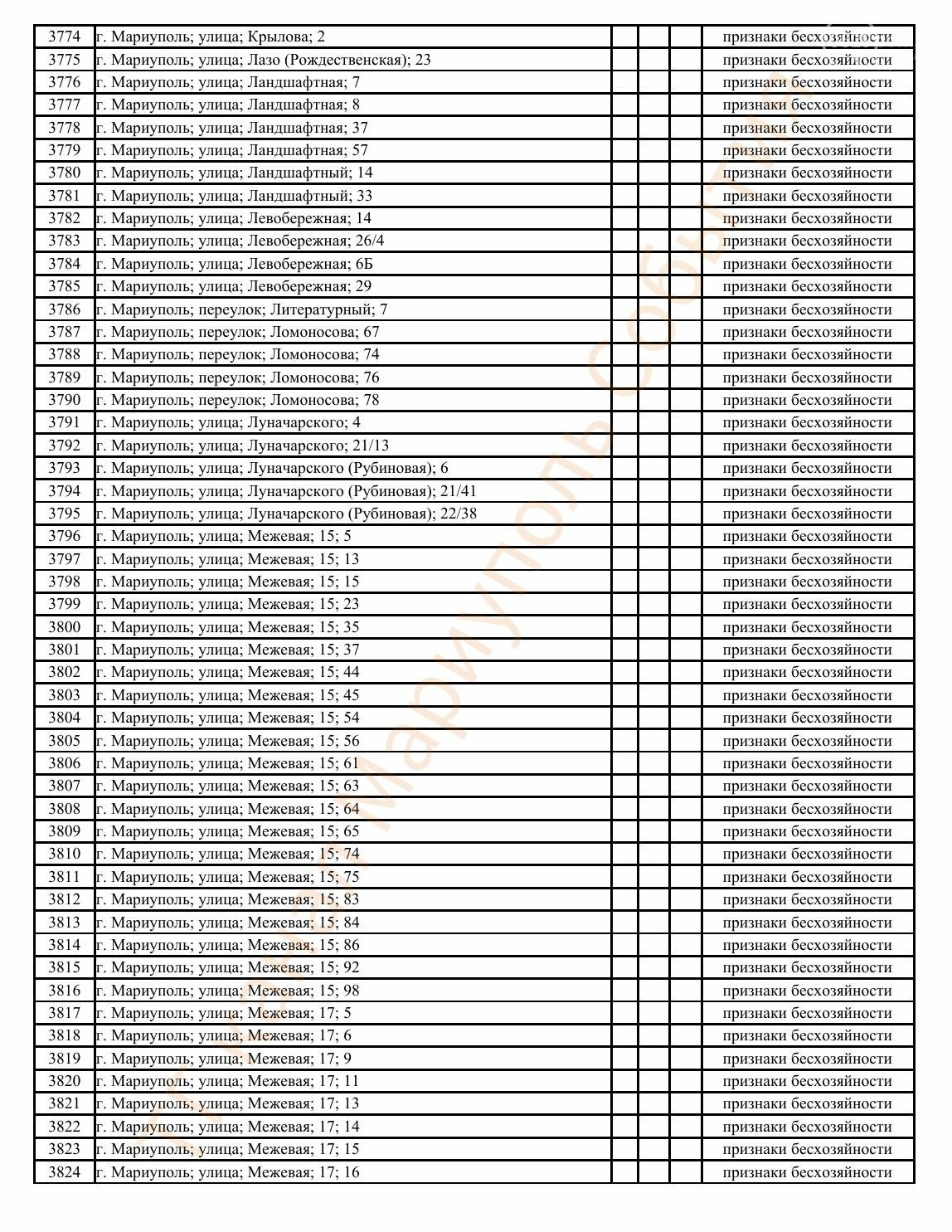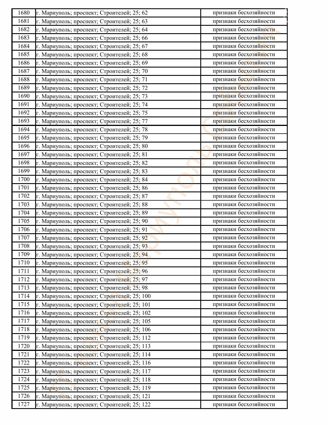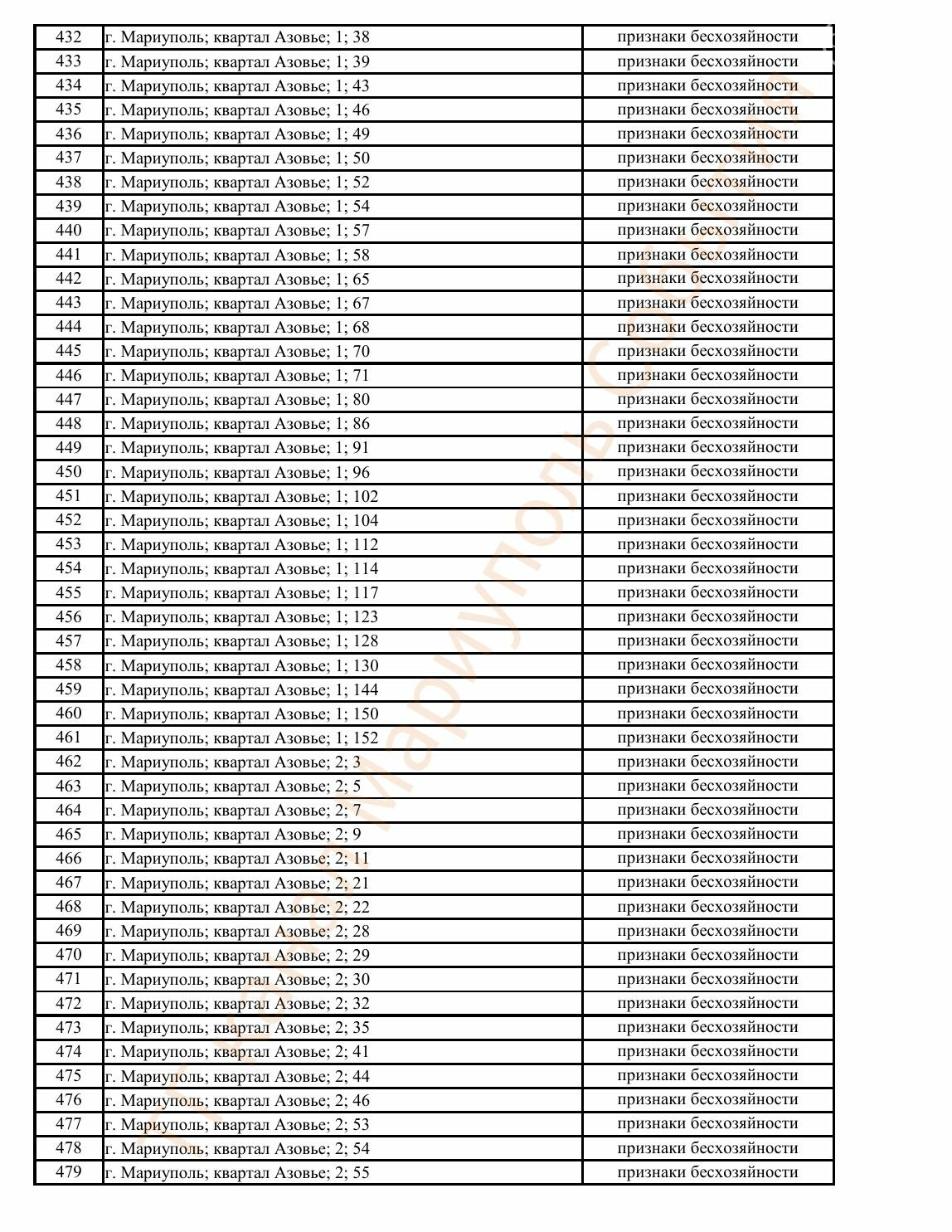 Окупаційна адміністрація Маріуполя оприлюднила черговий перелік нерухомості, яку визнали такою, що «має ознаки безхазяйності». У списку — близько 13 тисяч об’єктів, переважно квартир та житлових приміщень.