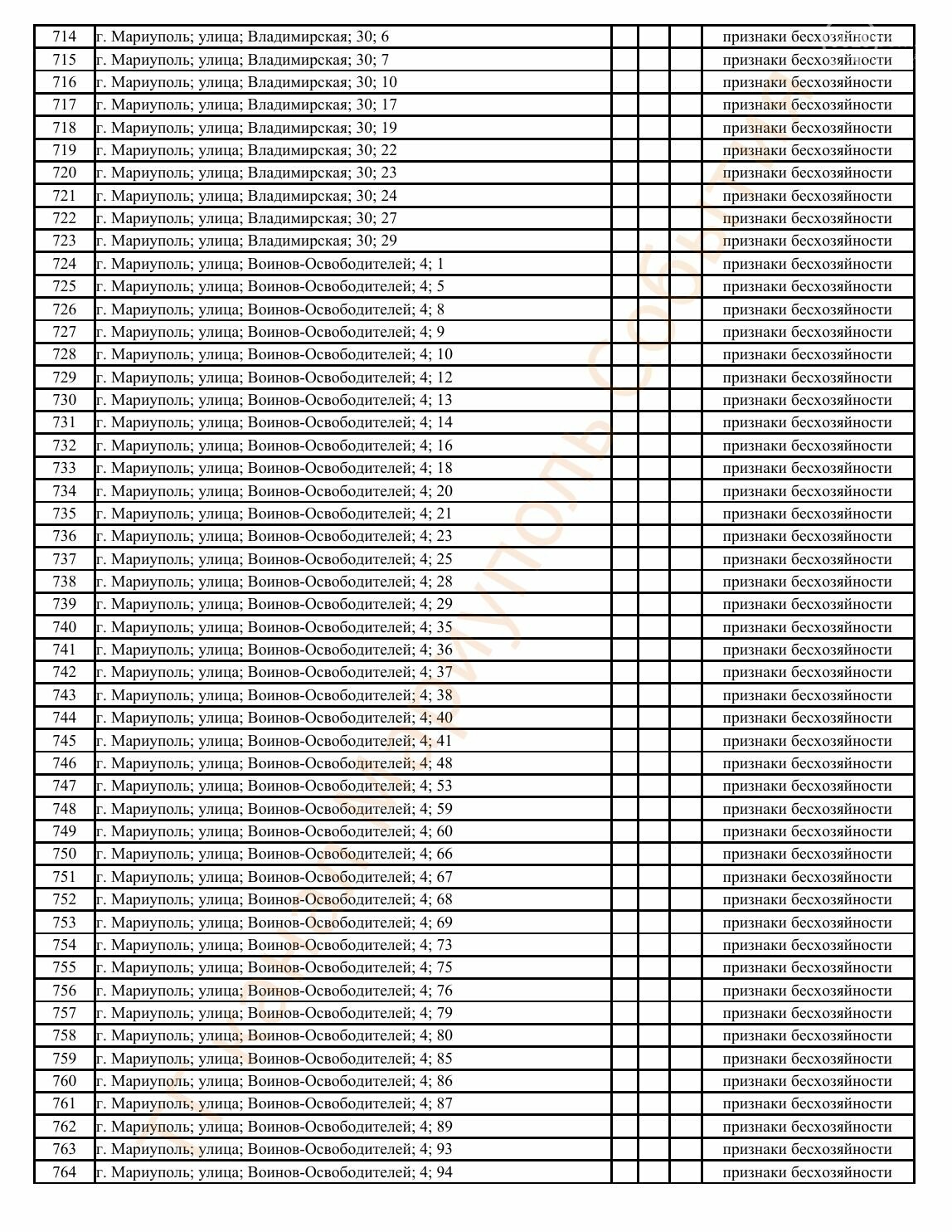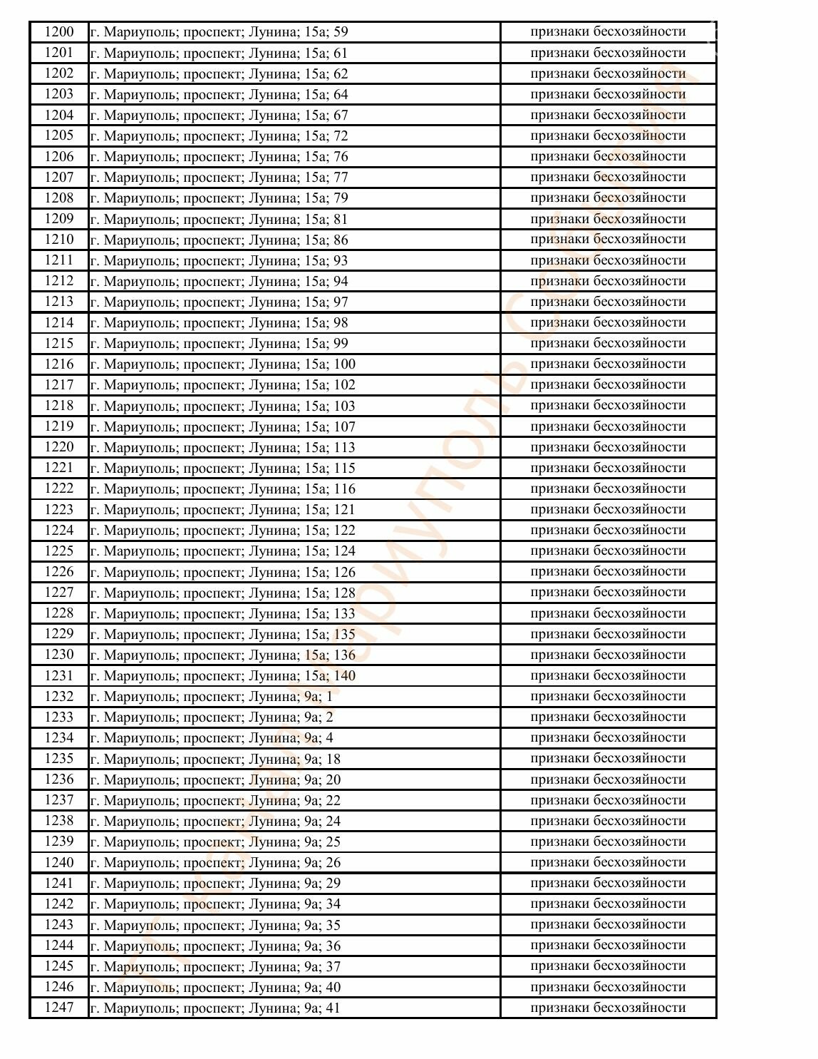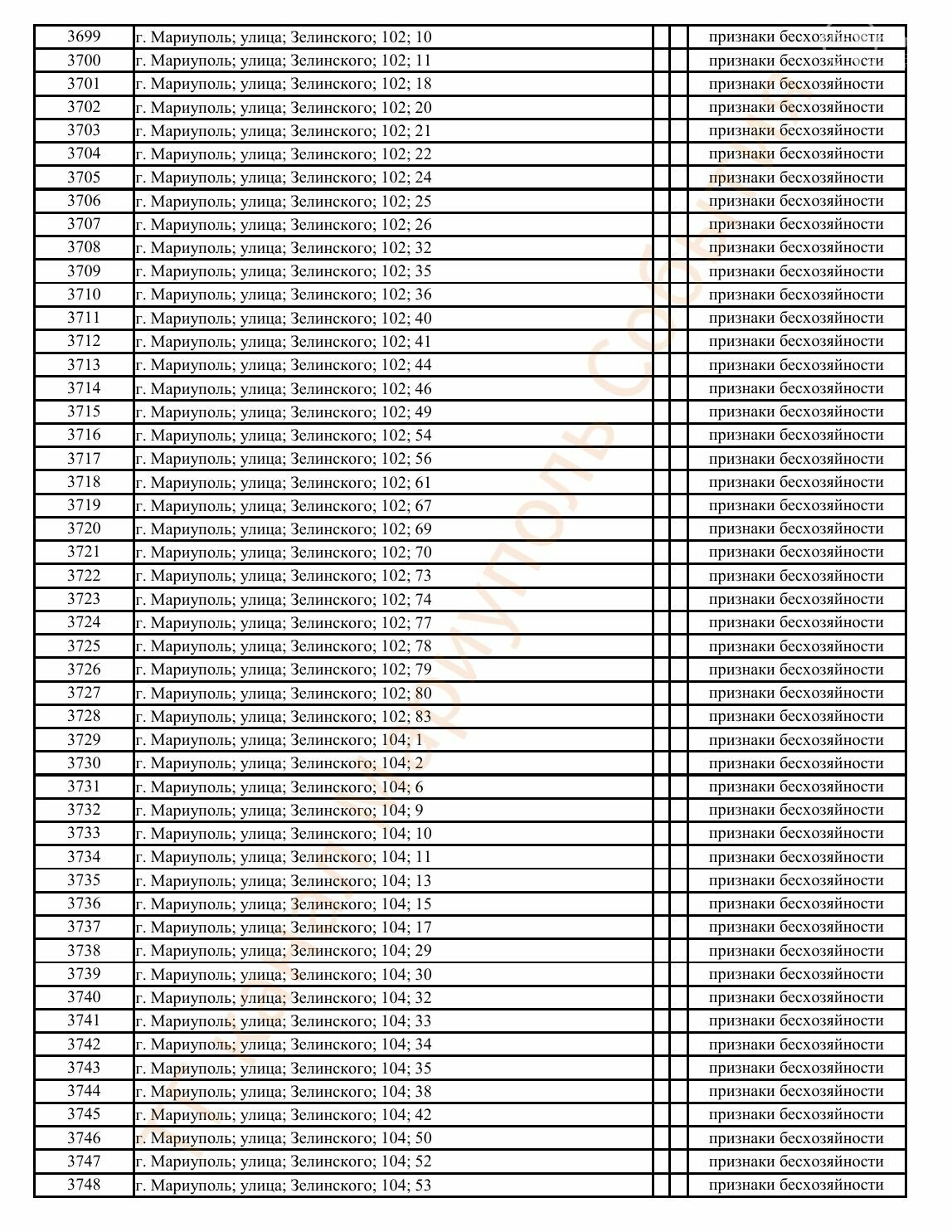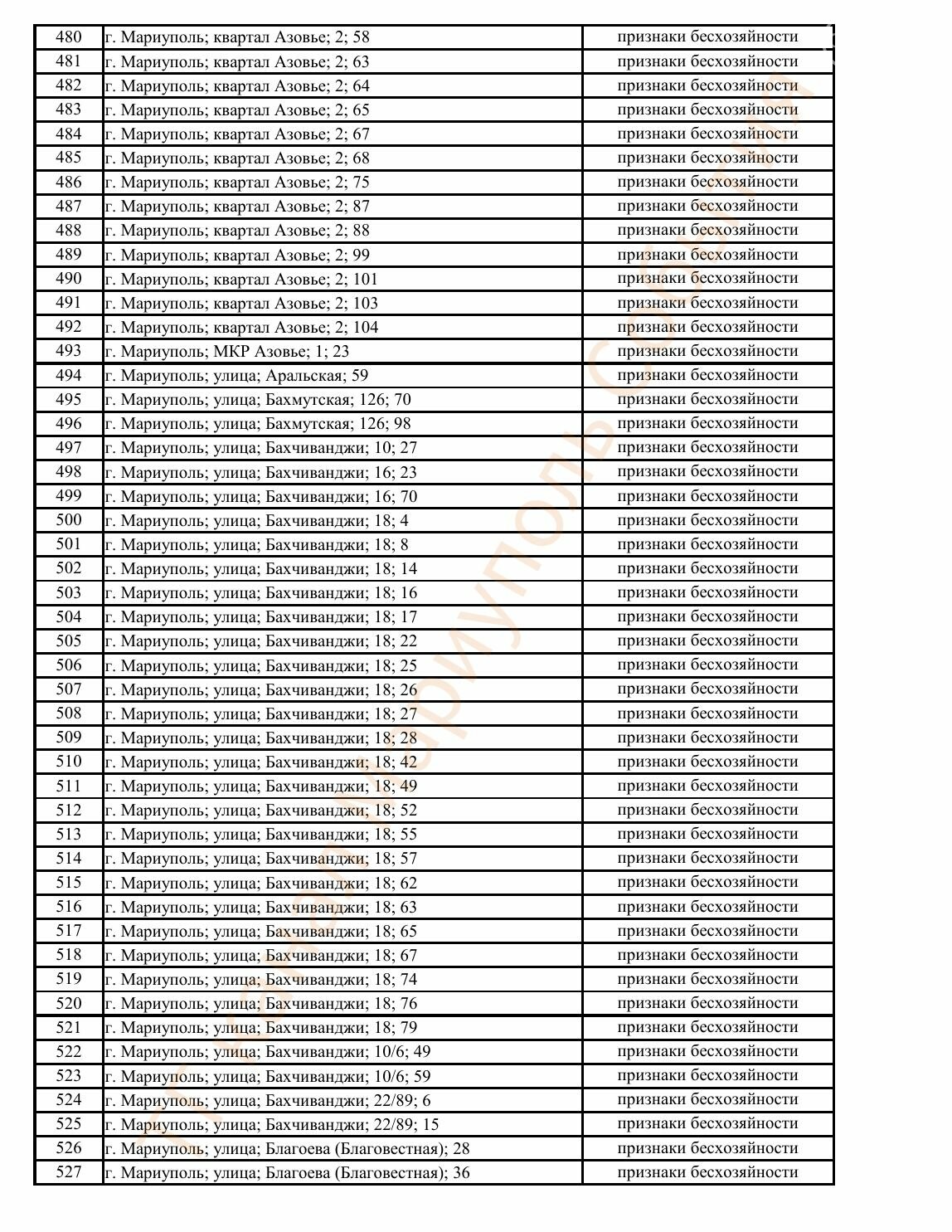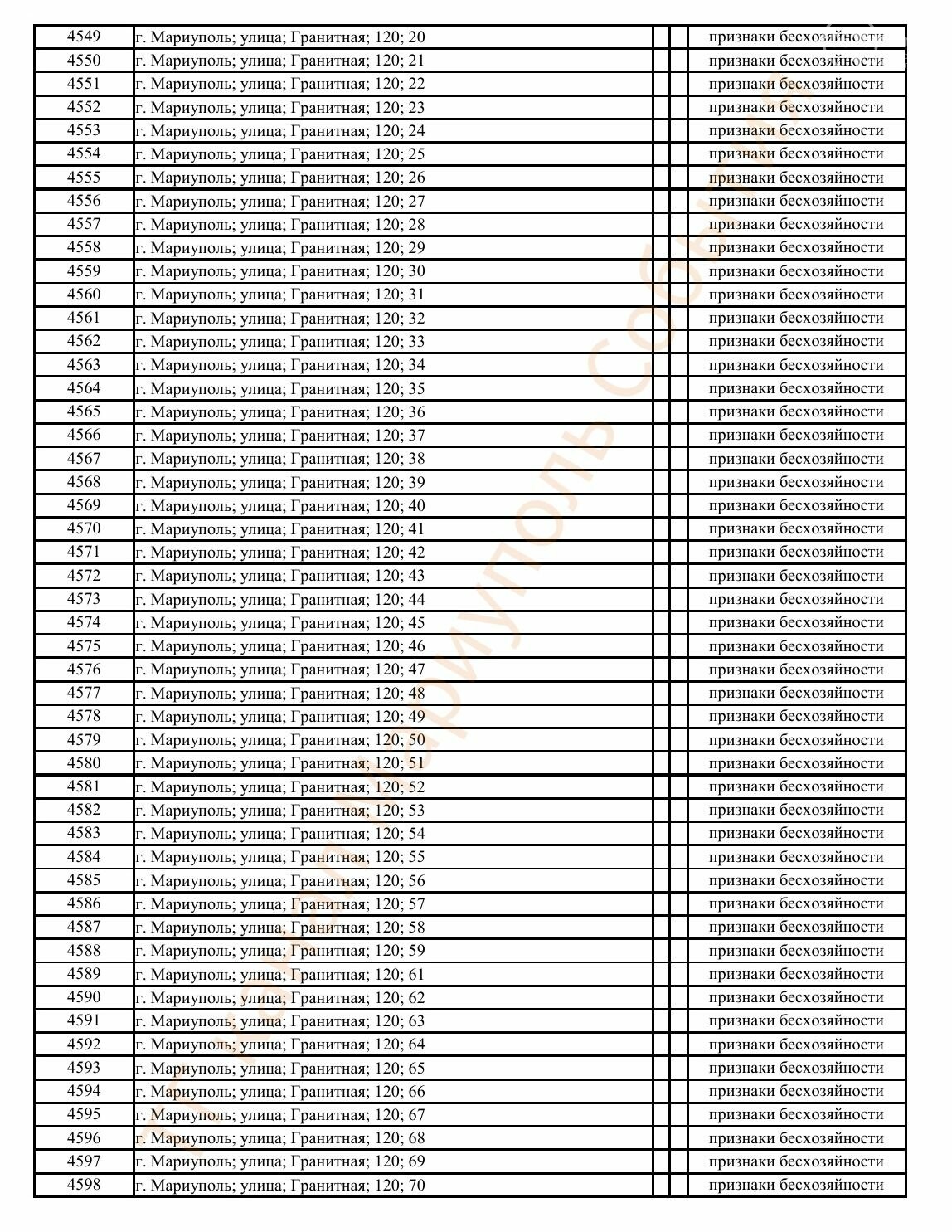 Окупаційна адміністрація Маріуполя оприлюднила черговий перелік нерухомості, яку визнали такою, що «має ознаки безхазяйності». У списку — близько 13 тисяч об’єктів, переважно квартир та житлових приміщень.
