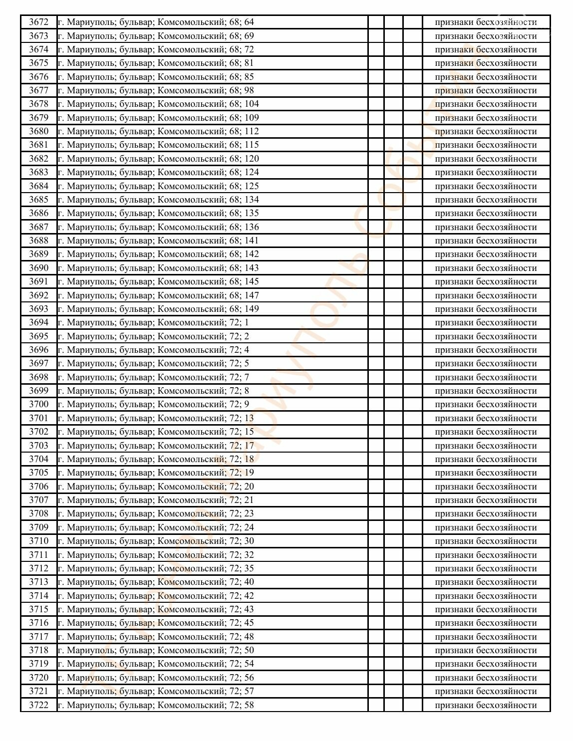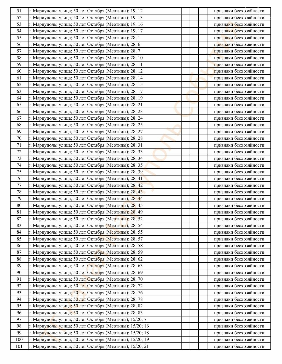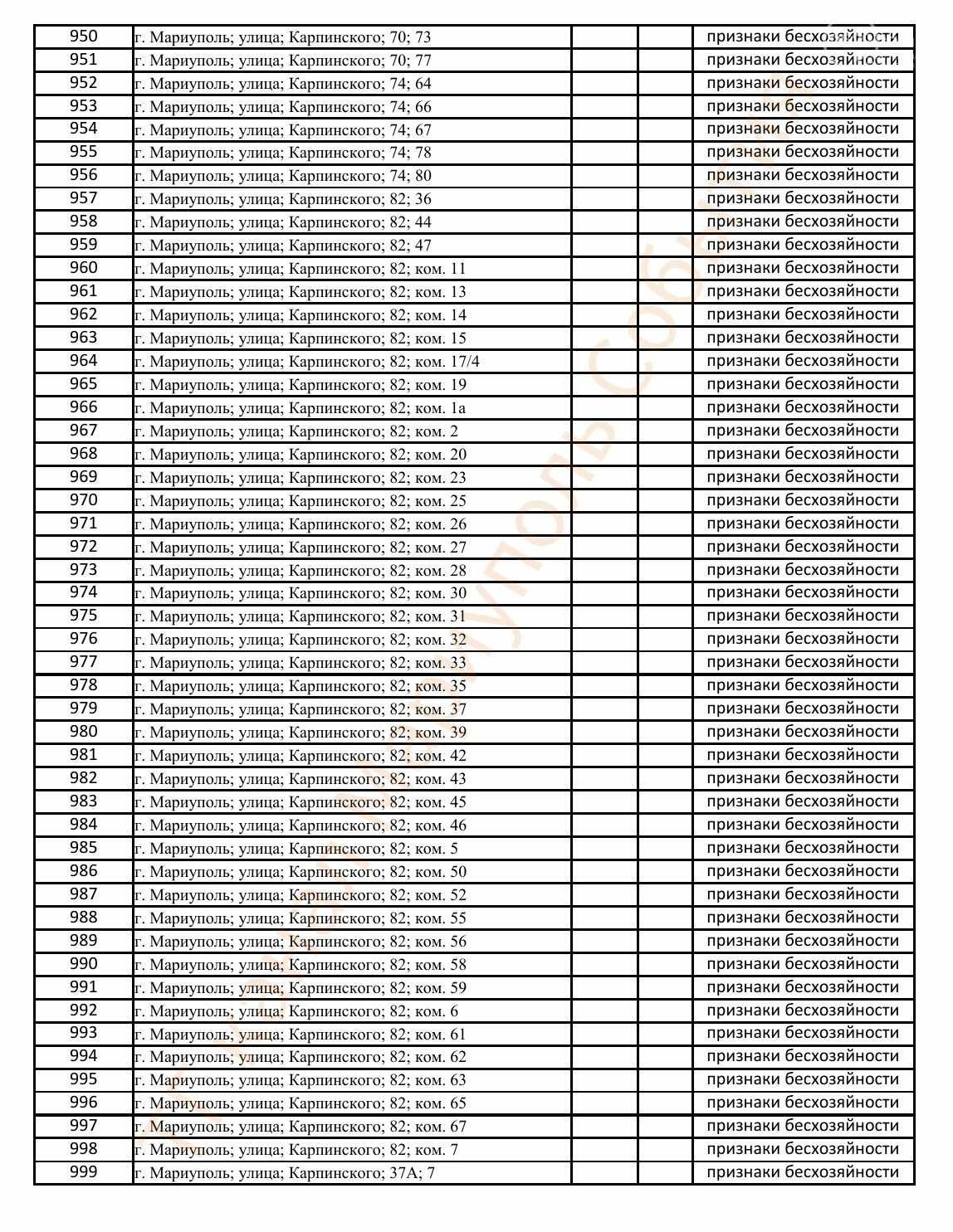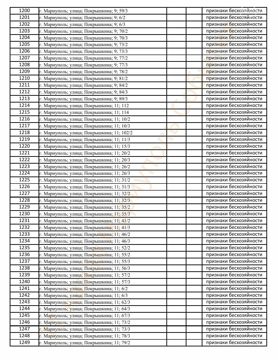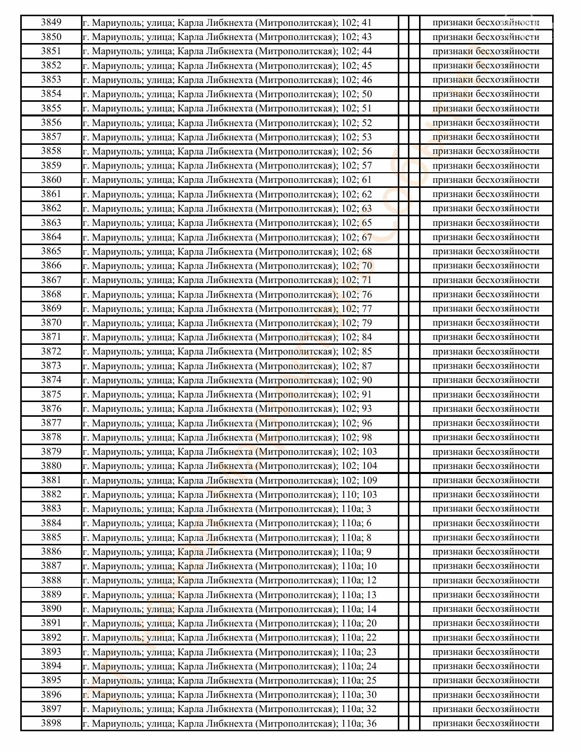 Окупаційна адміністрація Маріуполя оприлюднила черговий перелік нерухомості, яку визнали такою, що «має ознаки безхазяйності». У списку — близько 13 тисяч об’єктів, переважно квартир та житлових приміщень.