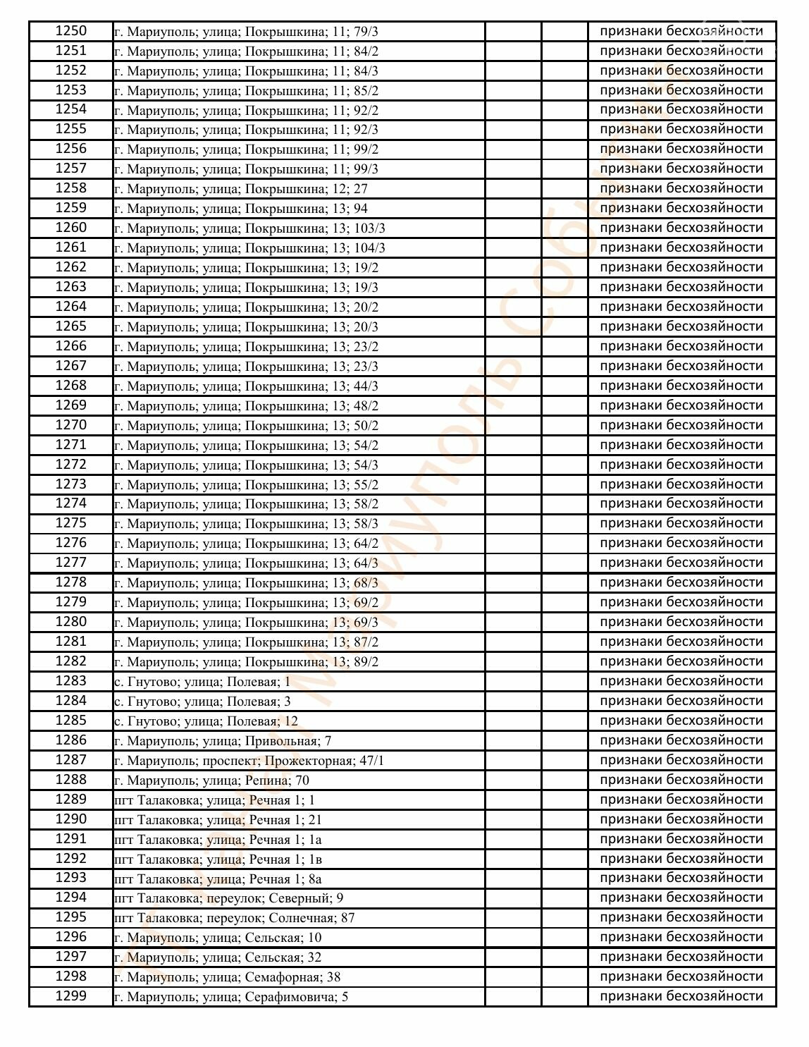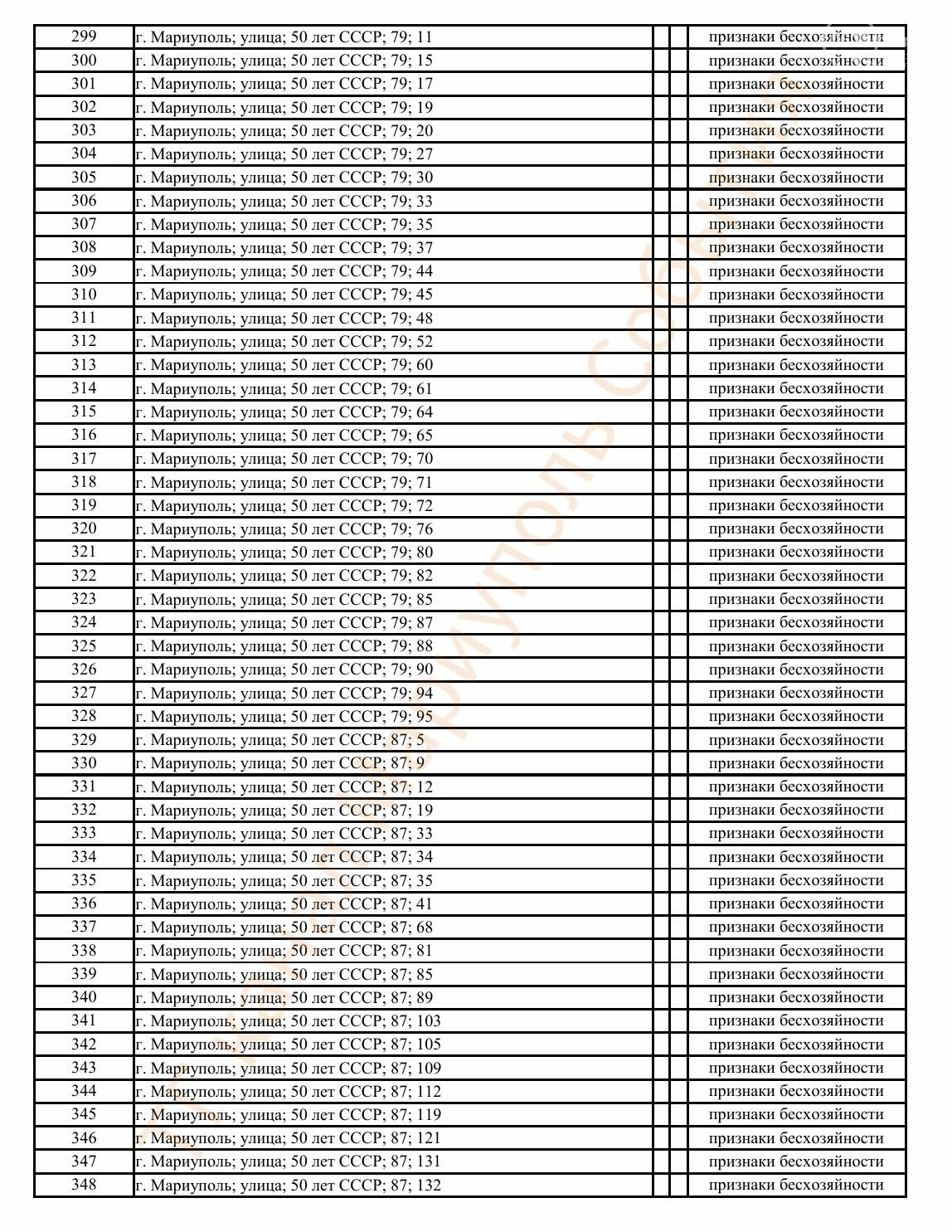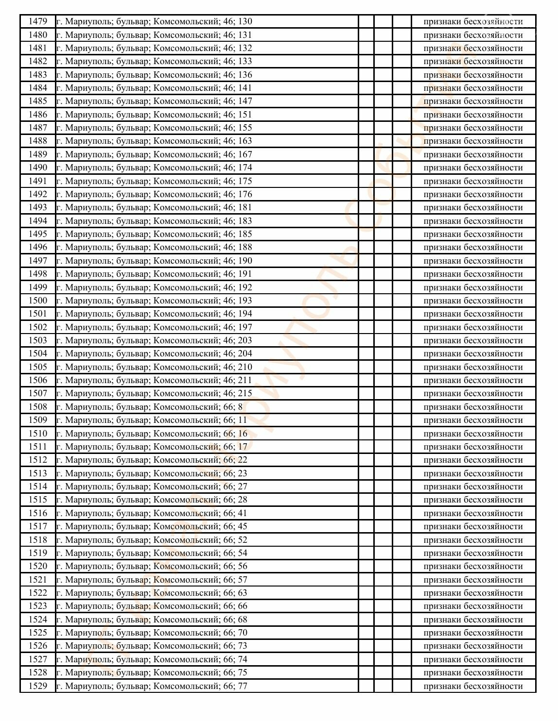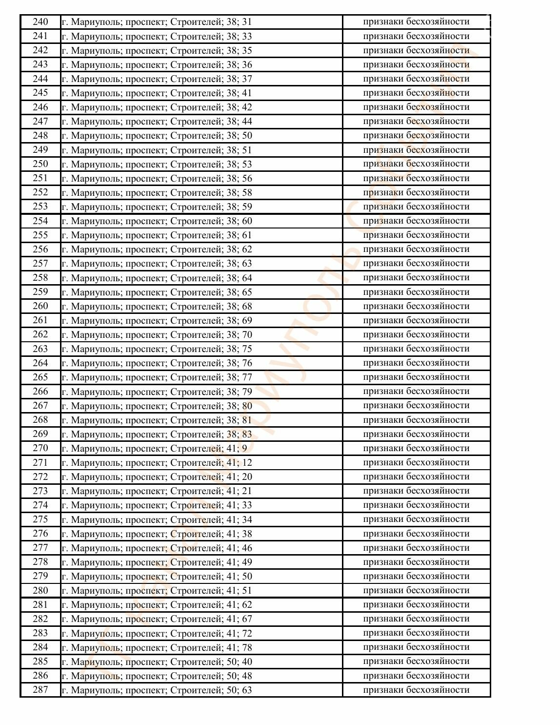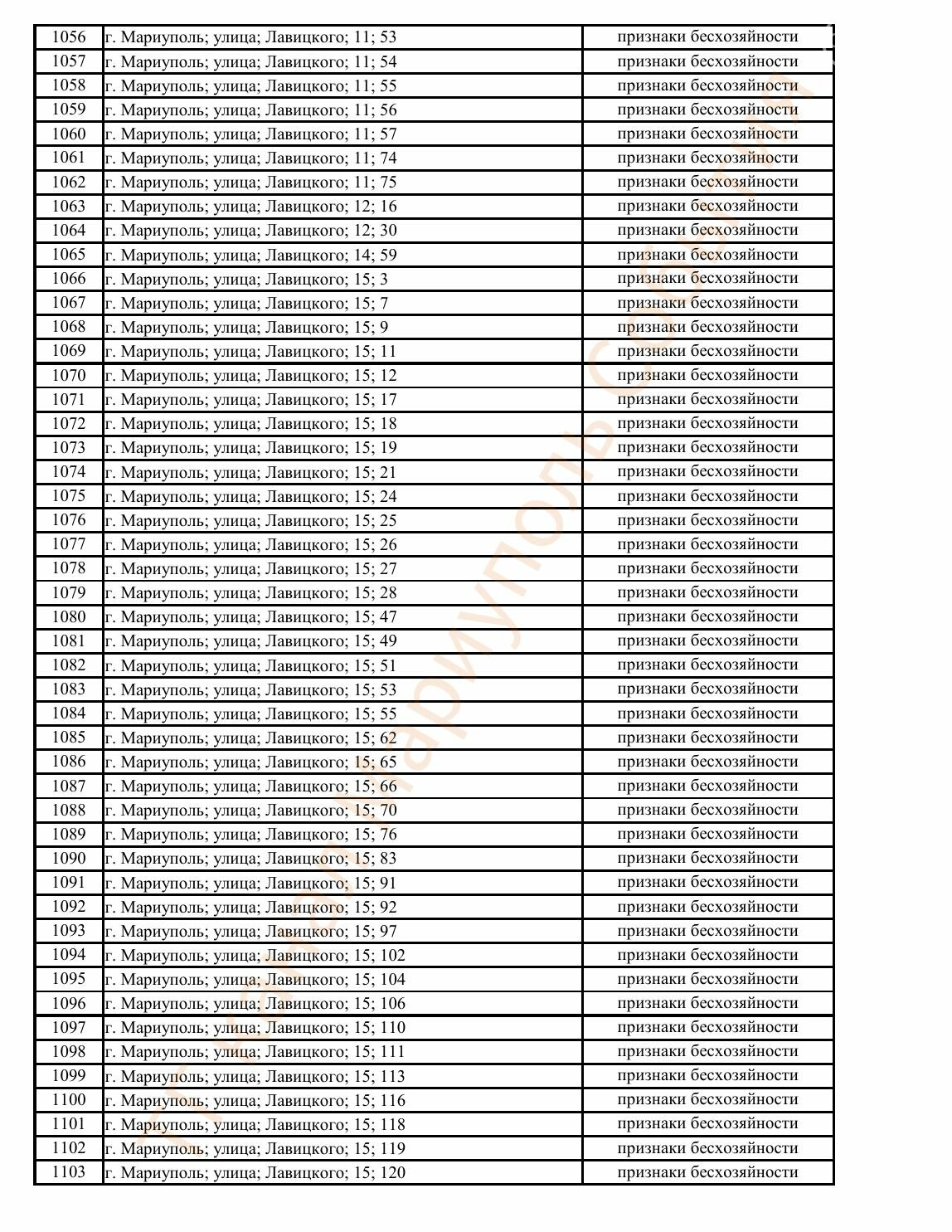 Окупаційна адміністрація Маріуполя оприлюднила черговий перелік нерухомості, яку визнали такою, що «має ознаки безхазяйності». У списку — близько 13 тисяч об’єктів, переважно квартир та житлових приміщень.