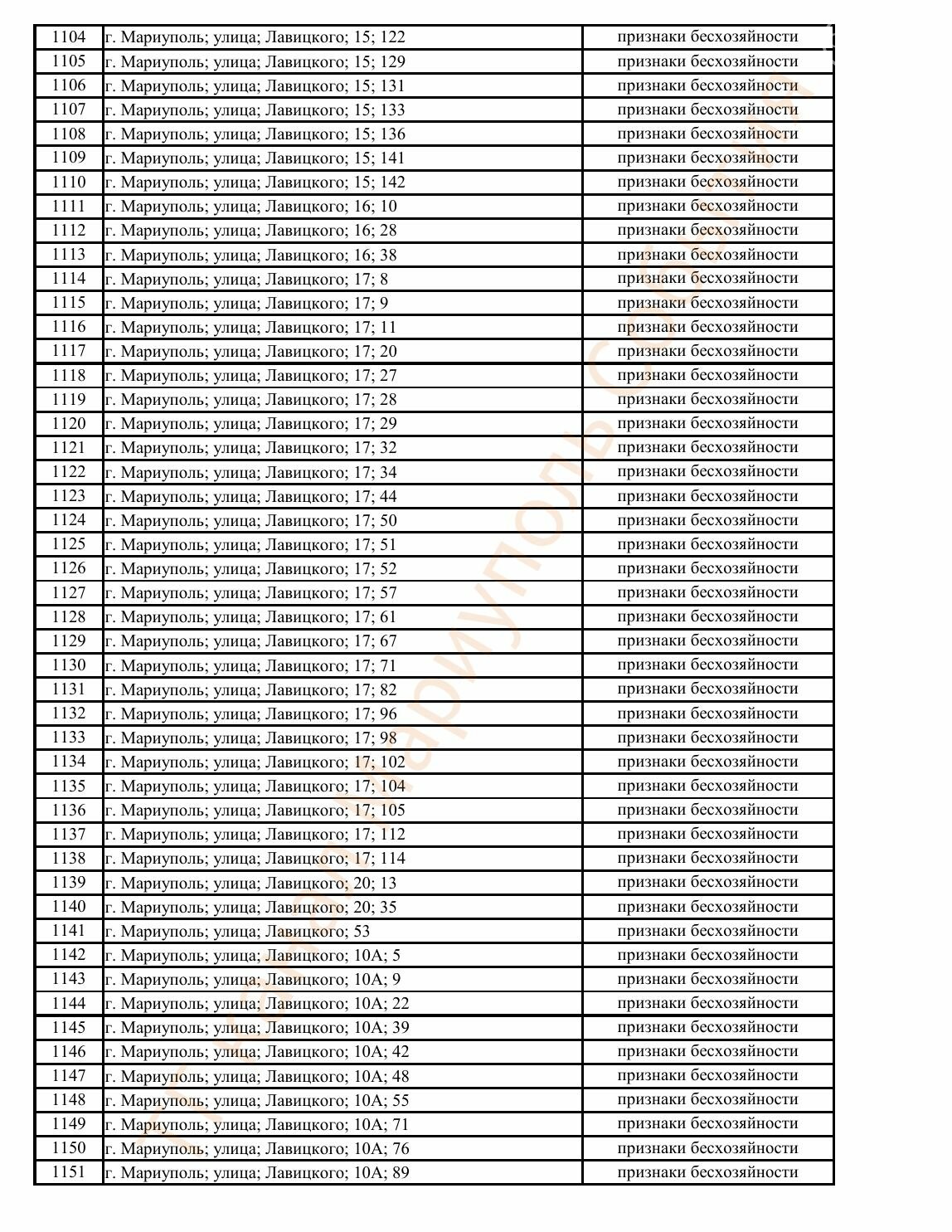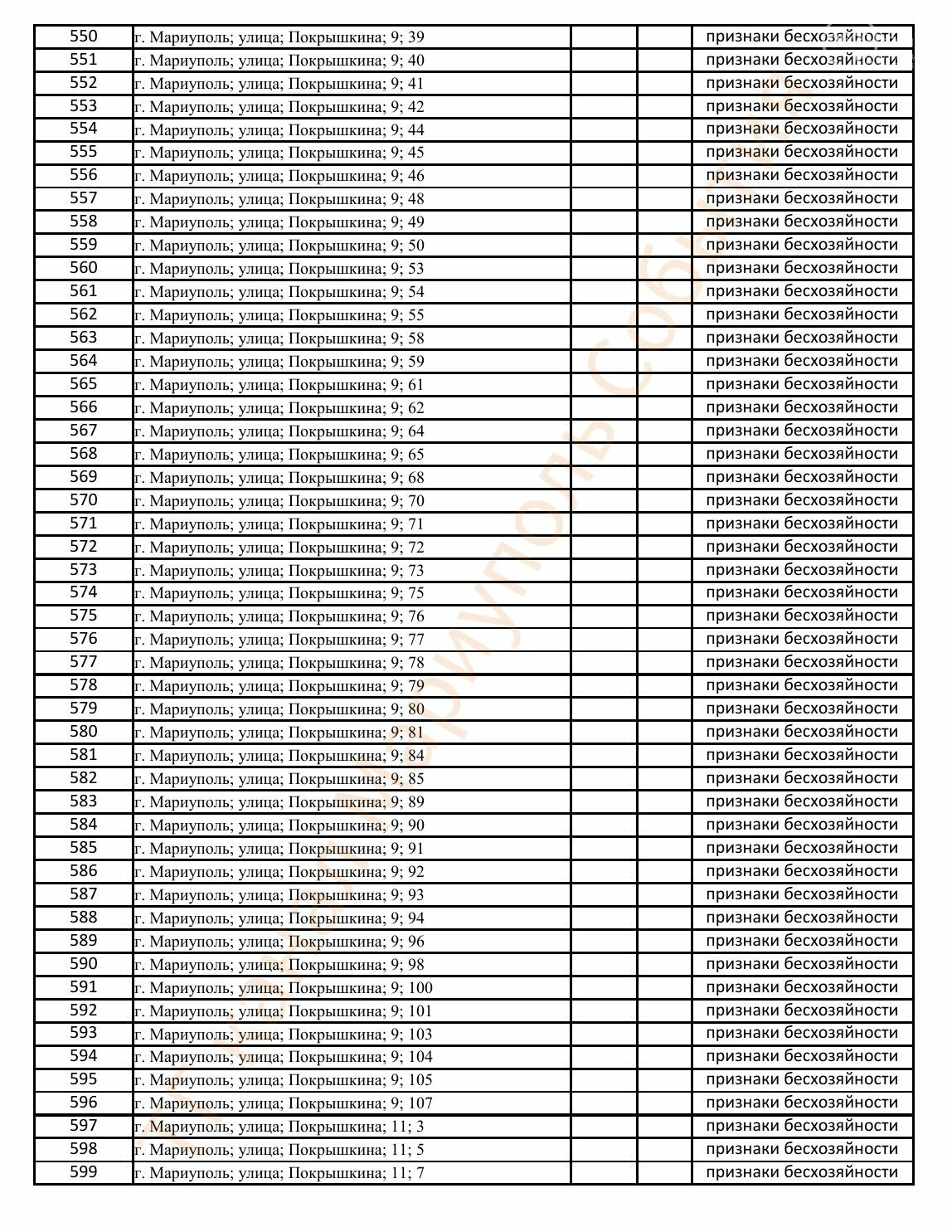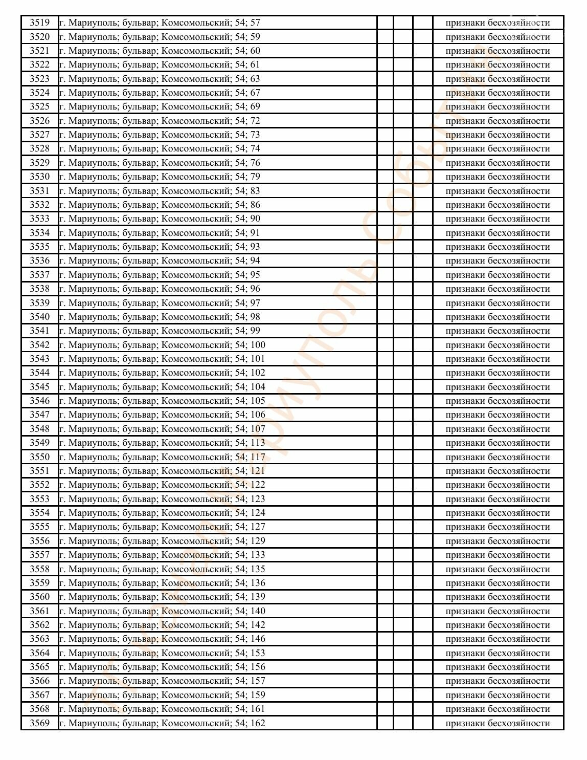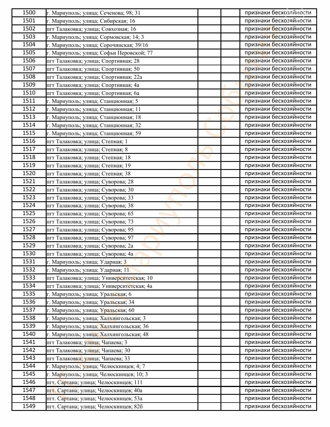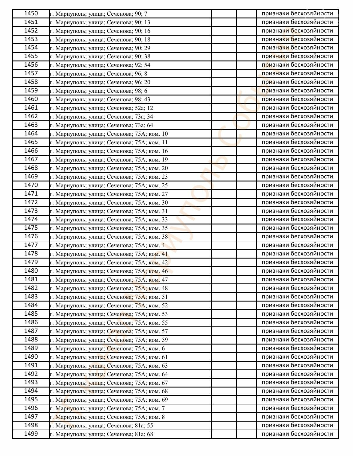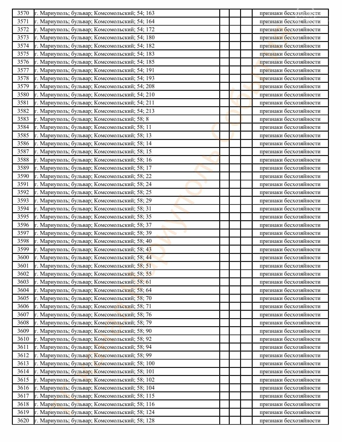 Окупаційна адміністрація Маріуполя оприлюднила черговий перелік нерухомості, яку визнали такою, що «має ознаки безхазяйності». У списку — близько 13 тисяч об’єктів, переважно квартир та житлових приміщень.