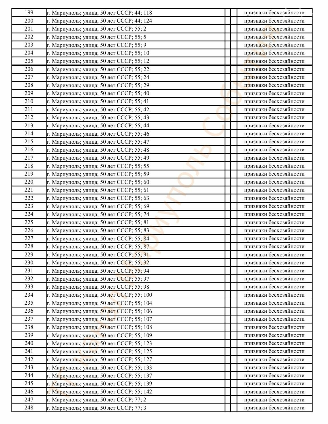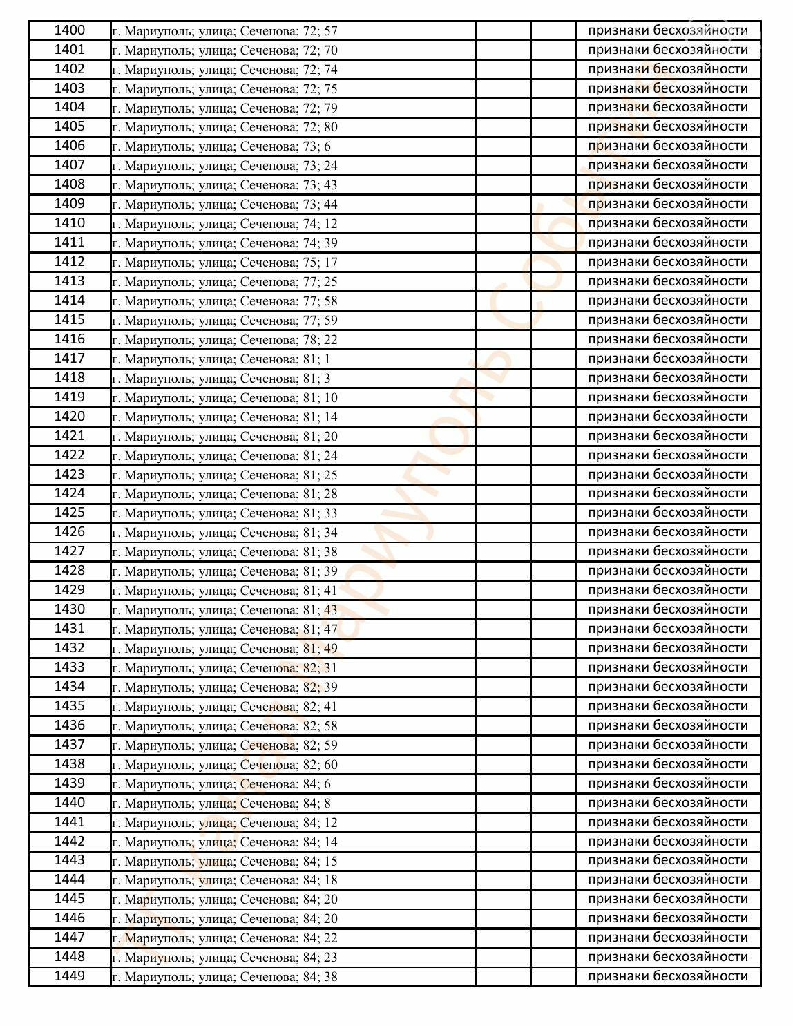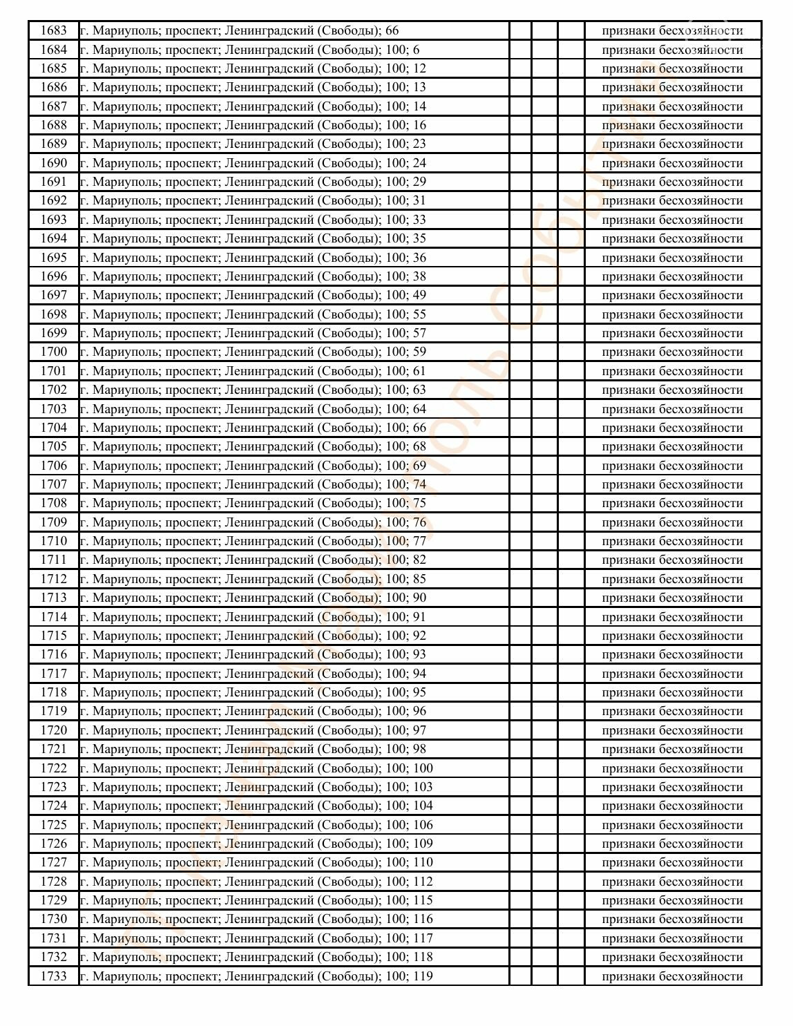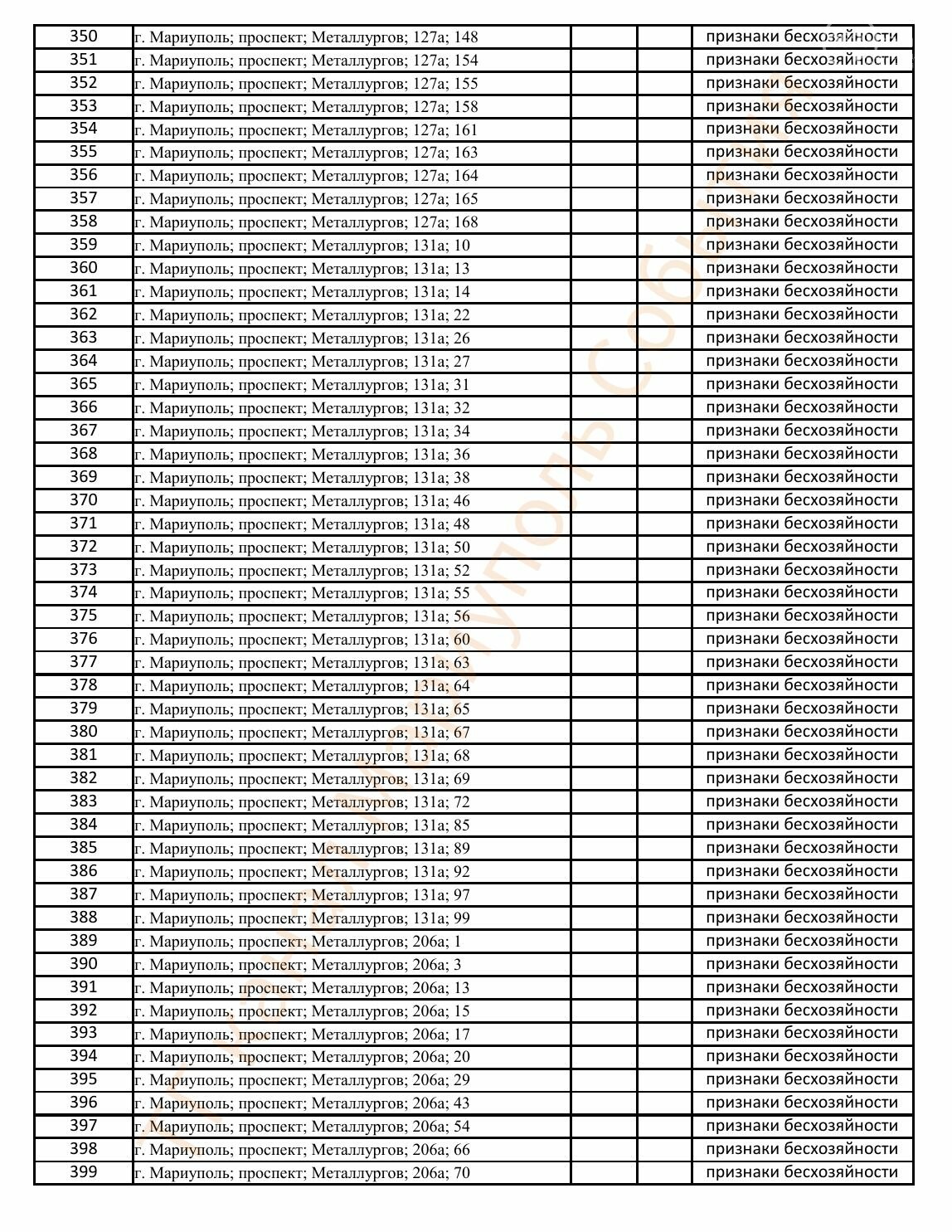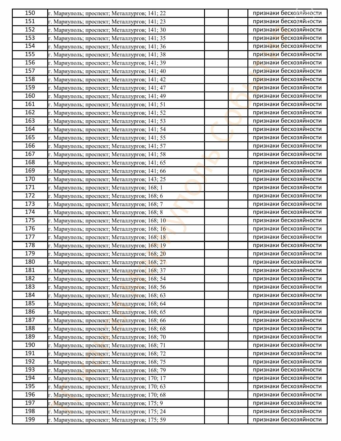 Окупаційна адміністрація Маріуполя оприлюднила черговий перелік нерухомості, яку визнали такою, що «має ознаки безхазяйності». У списку — близько 13 тисяч об’єктів, переважно квартир та житлових приміщень.