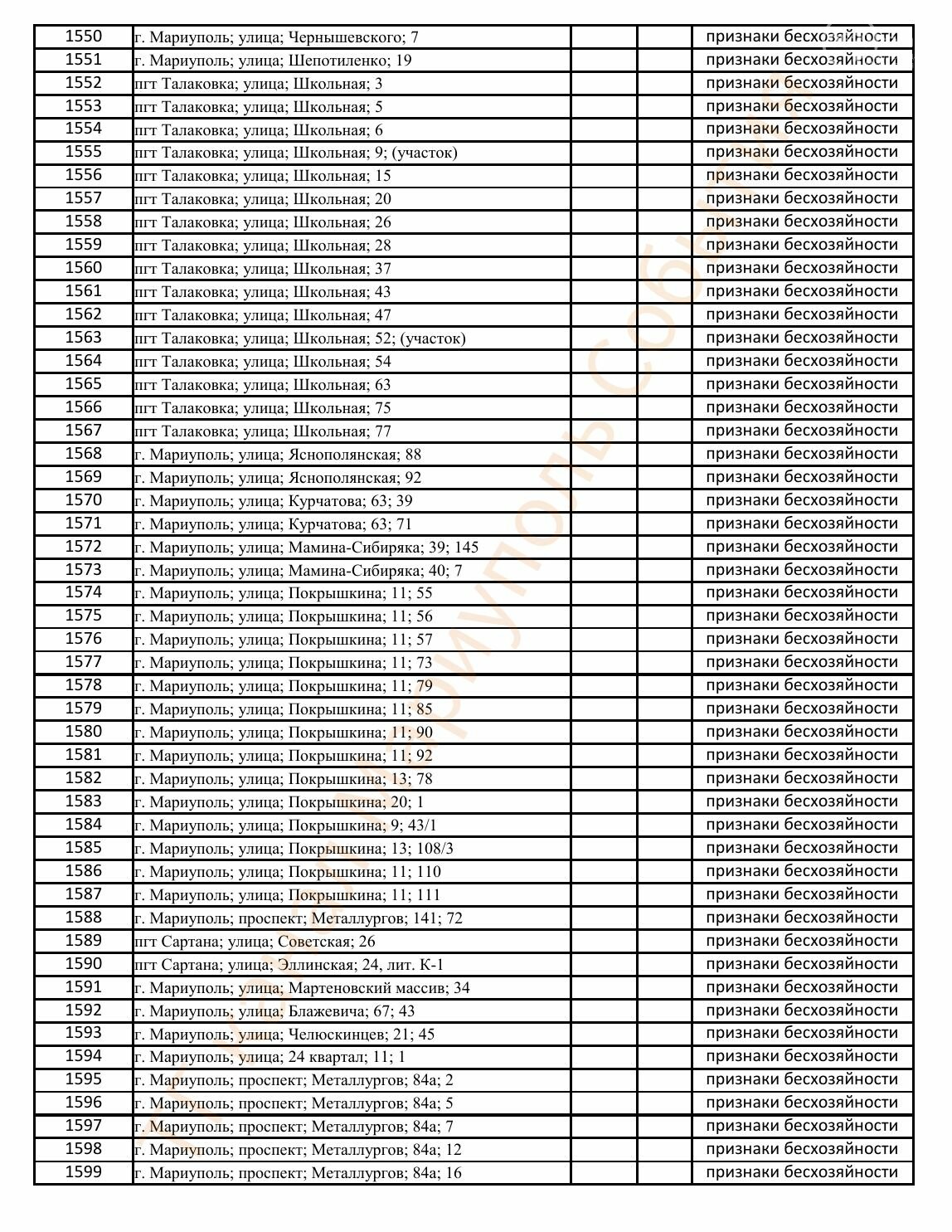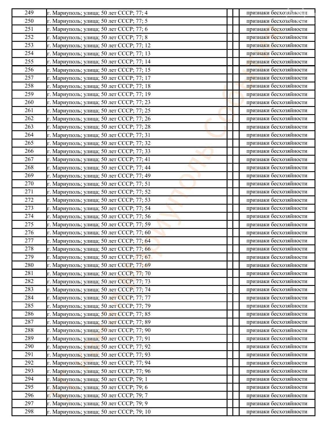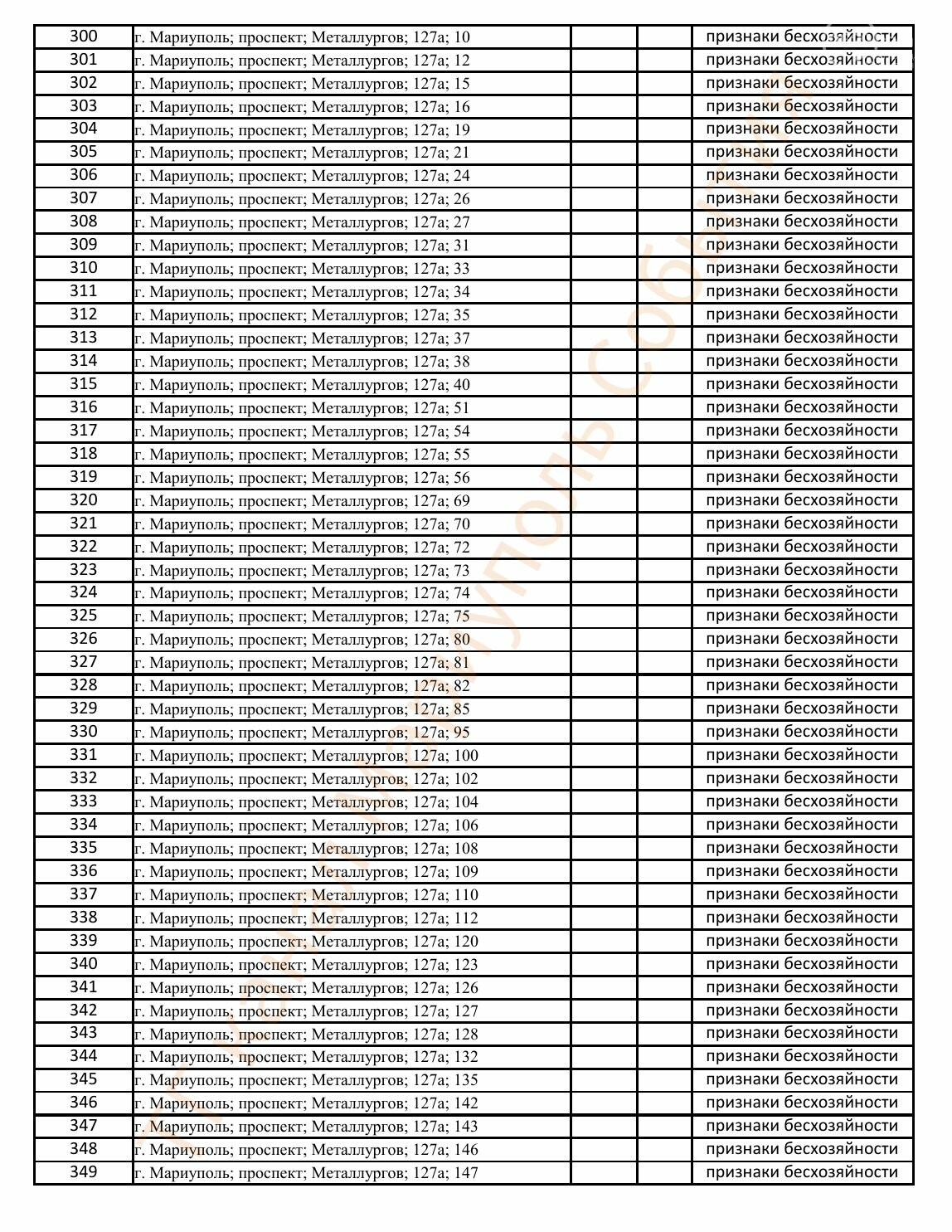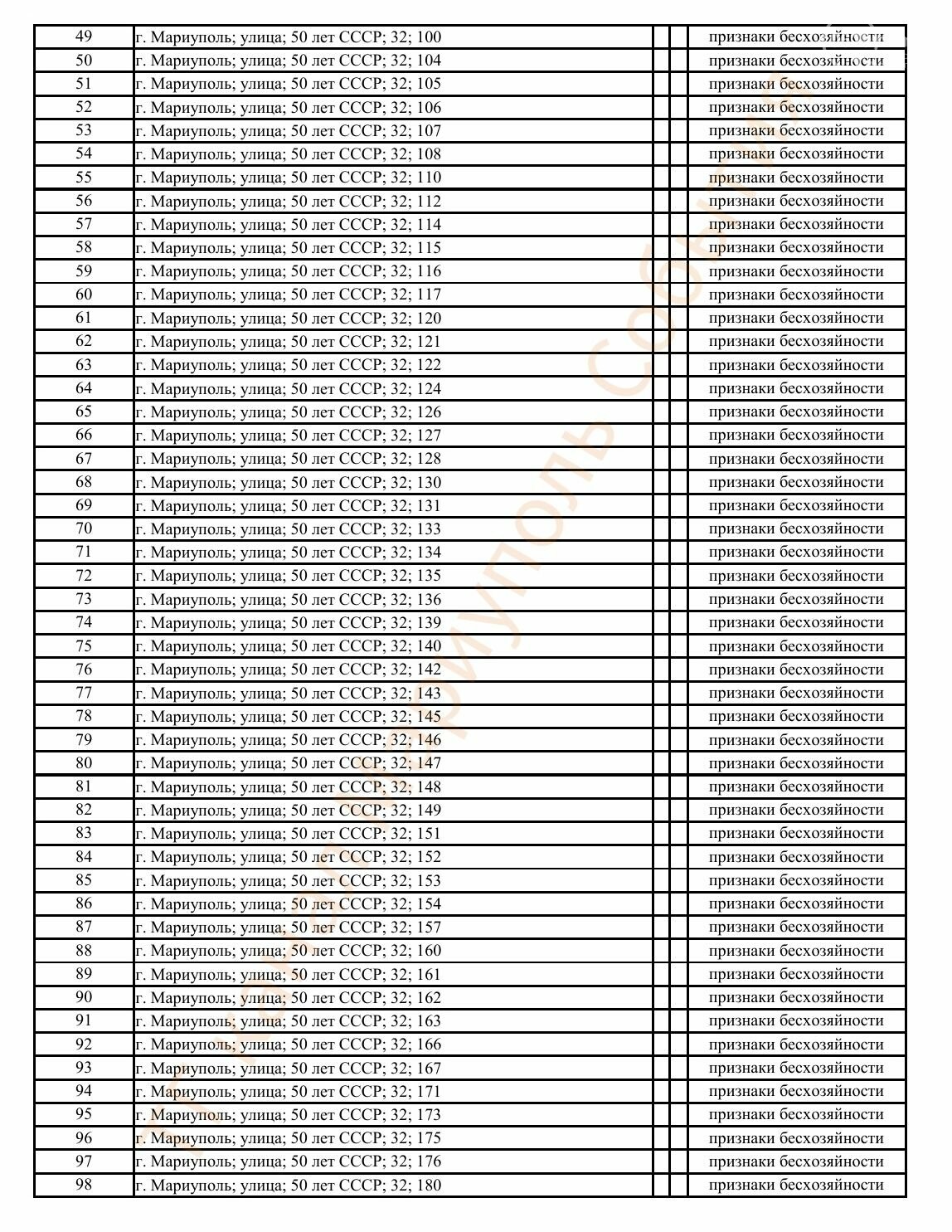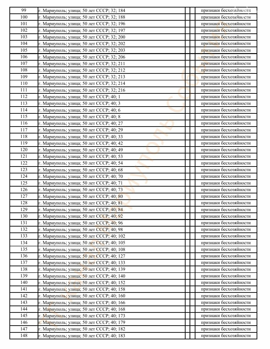 Окупаційна адміністрація Маріуполя оприлюднила черговий перелік нерухомості, яку визнали такою, що «має ознаки безхазяйності». У списку — близько 13 тисяч об’єктів, переважно квартир та житлових приміщень.