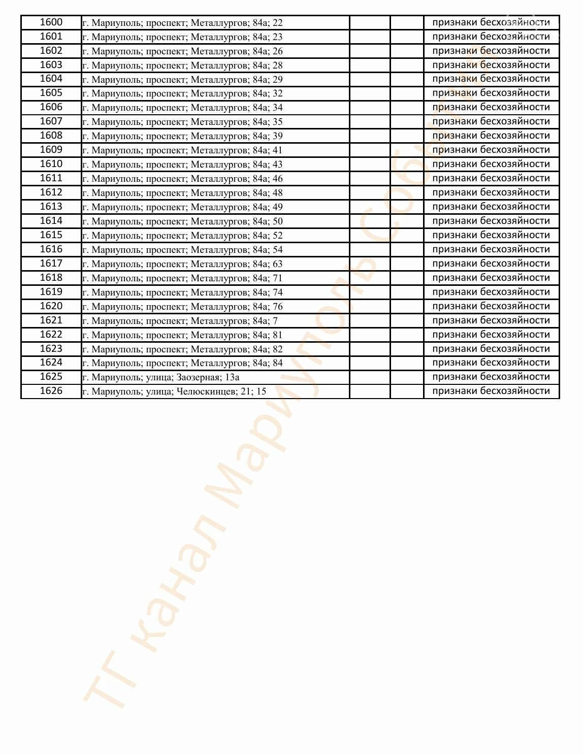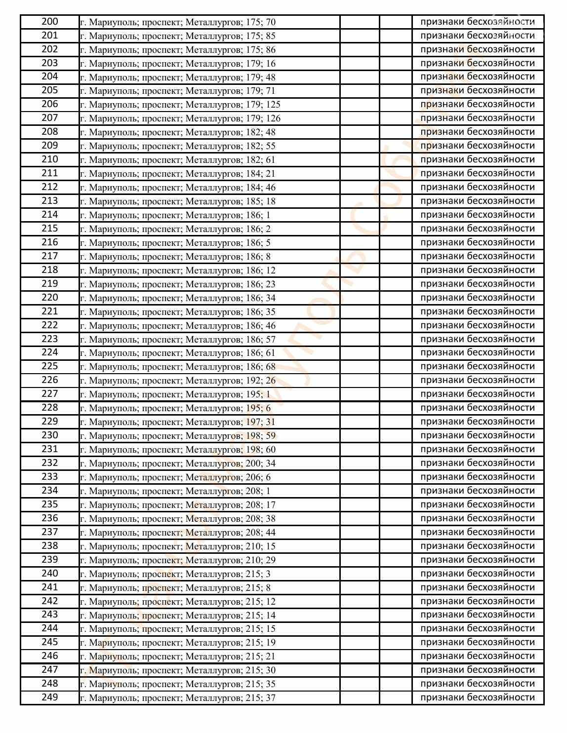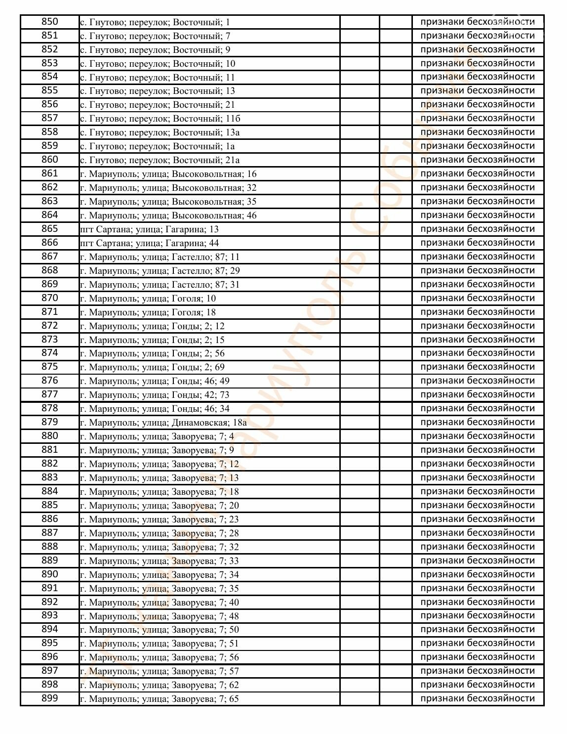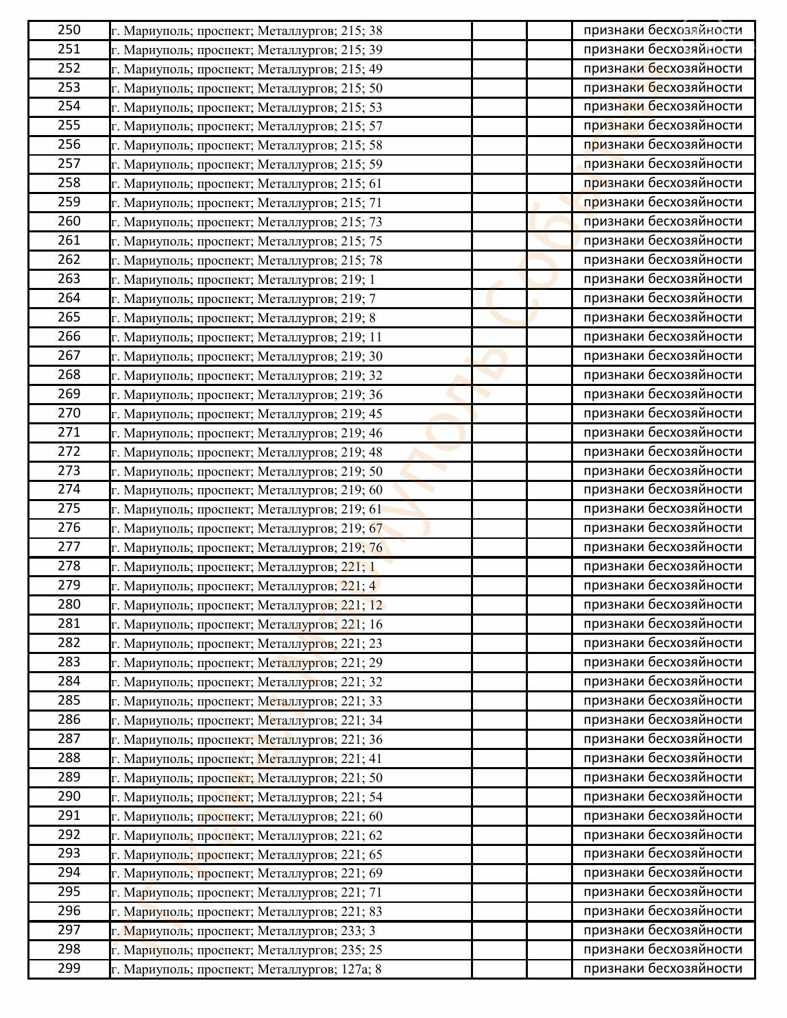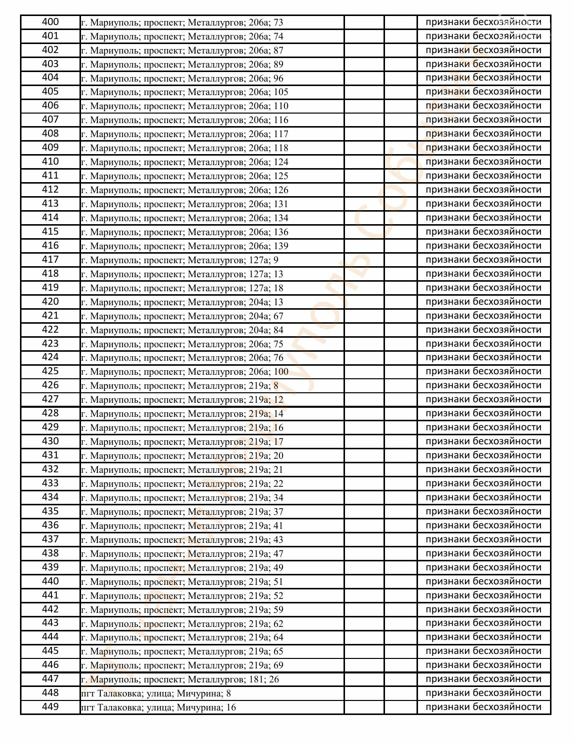 Окупаційна адміністрація Маріуполя оприлюднила черговий перелік нерухомості, яку визнали такою, що «має ознаки безхазяйності». У списку — близько 13 тисяч об’єктів, переважно квартир та житлових приміщень.