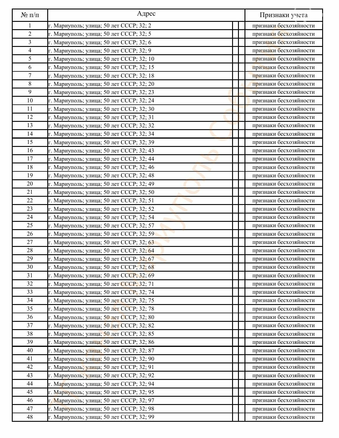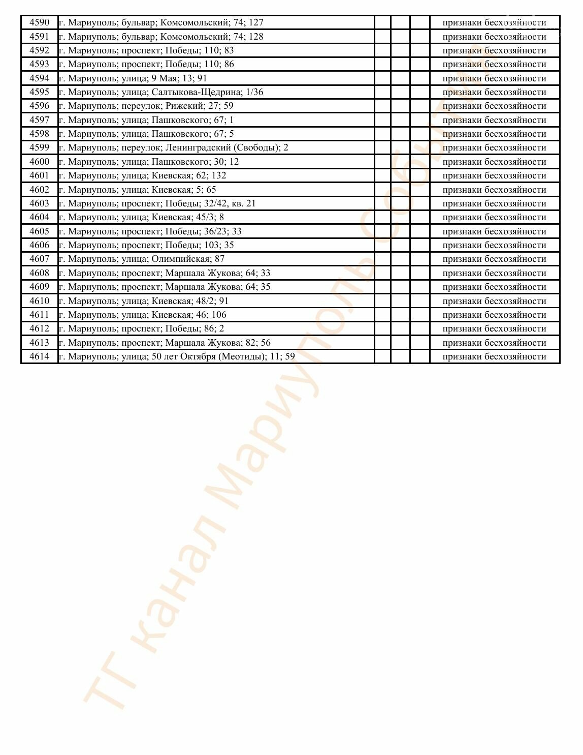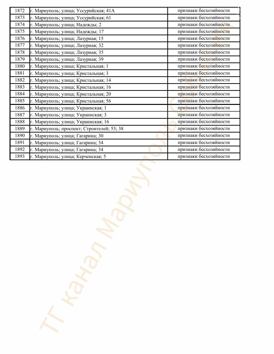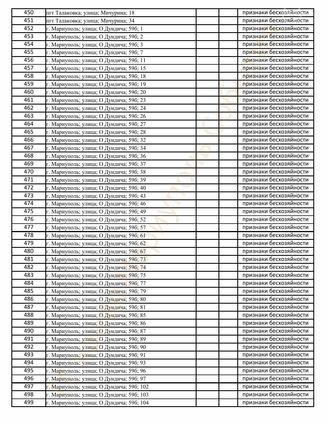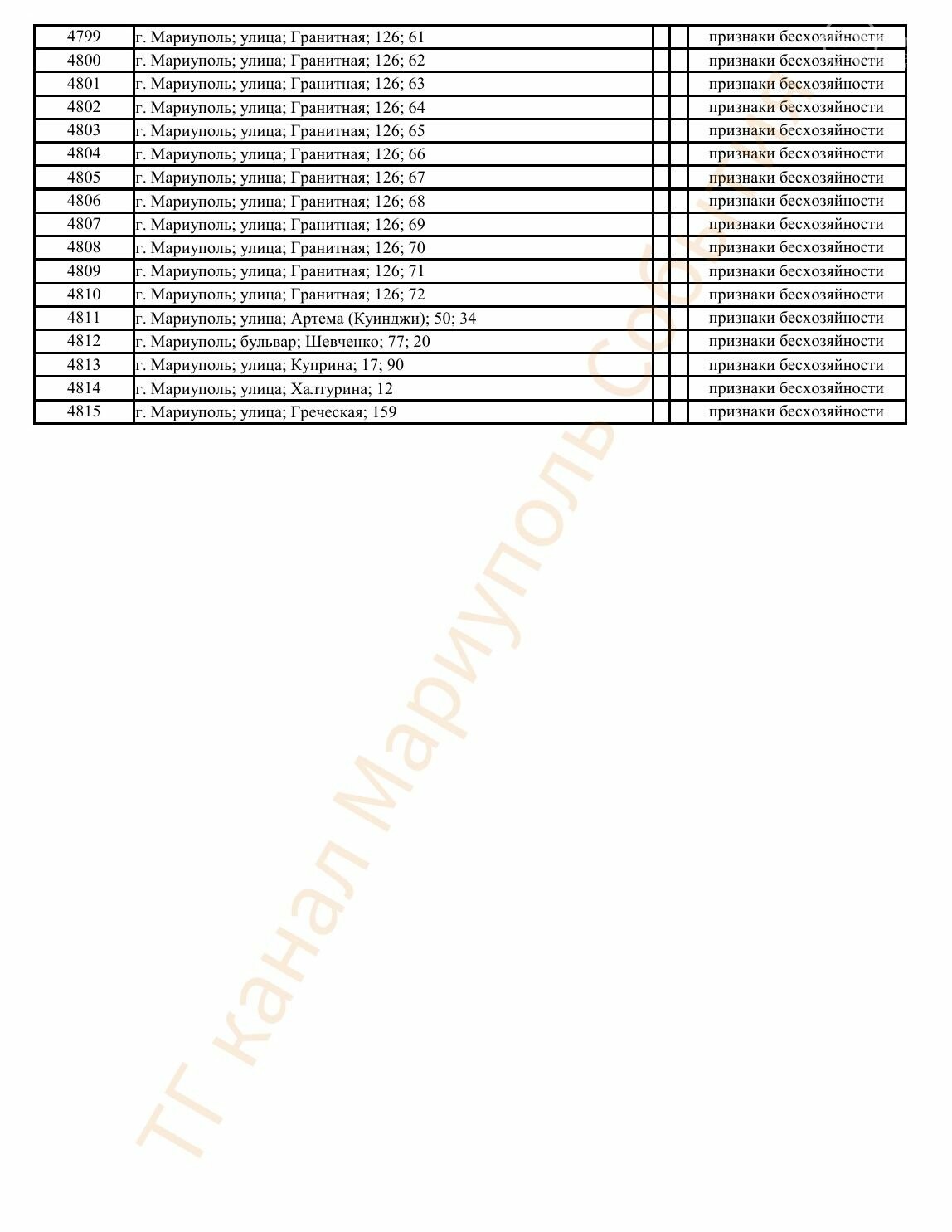 Окупаційна адміністрація Маріуполя оприлюднила черговий перелік нерухомості, яку визнали такою, що «має ознаки безхазяйності». У списку — близько 13 тисяч об’єктів, переважно квартир та житлових приміщень.