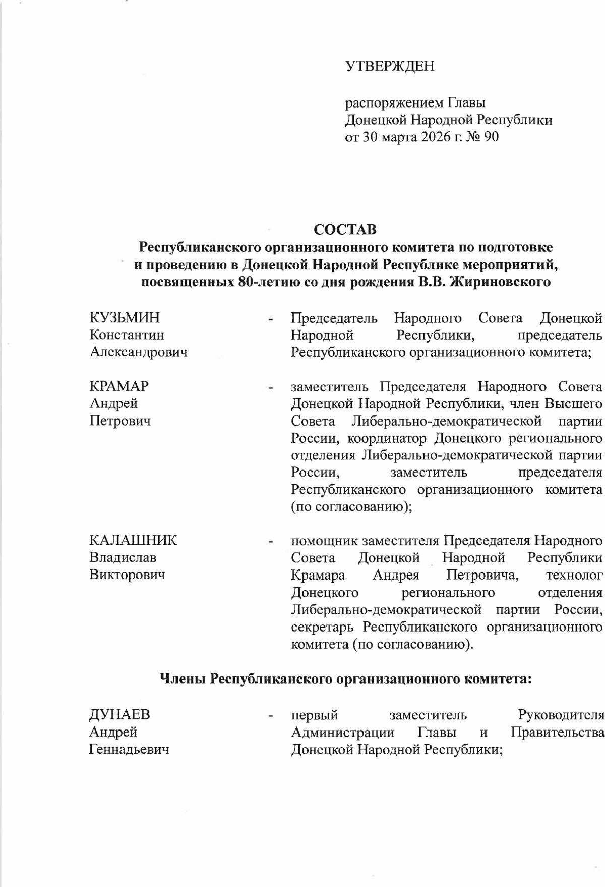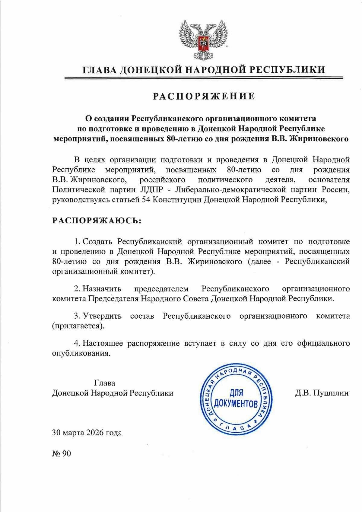 Відповідне розпорядження підписав ватажок так званої “ДНР” 30 березня 2026 року.