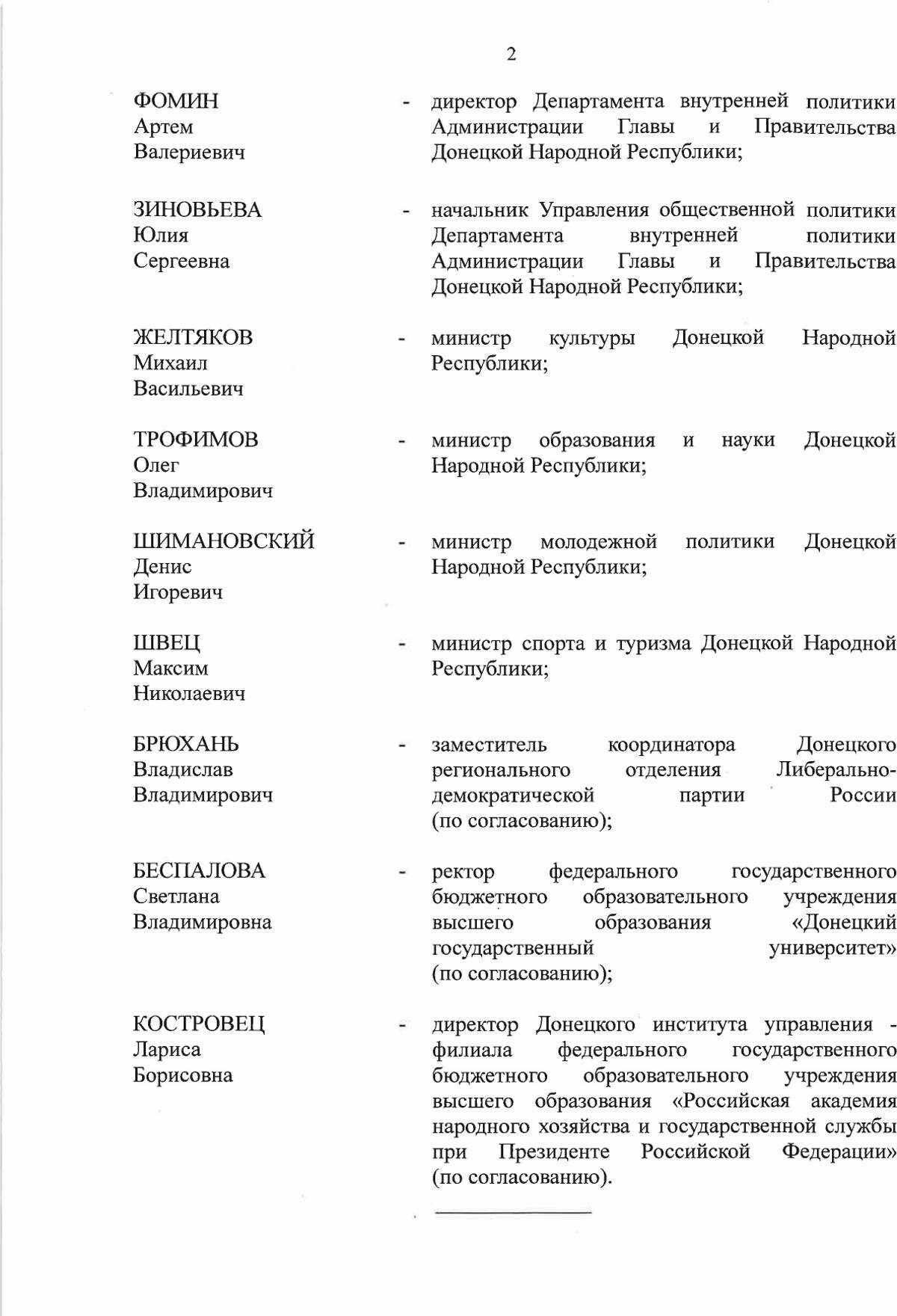 Очолить його голова так званої “народної ради ДНР”, а до складу включили представників окупаційної адміністрації — від чиновників до керівників сфер освіти, культури, спорту та молодіжної політики.