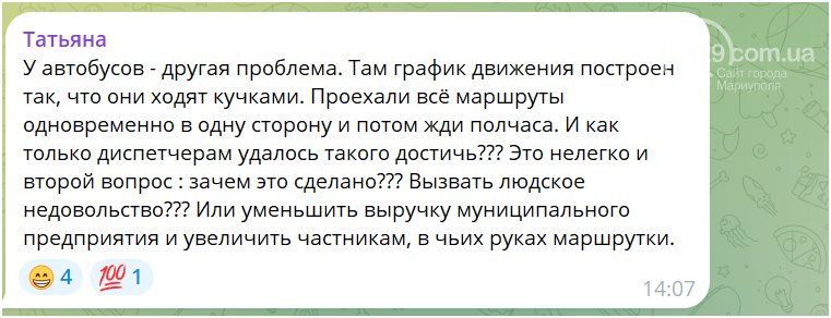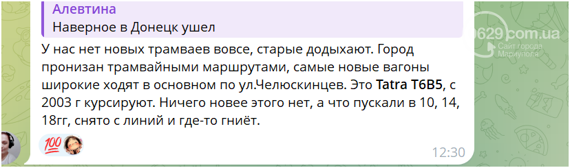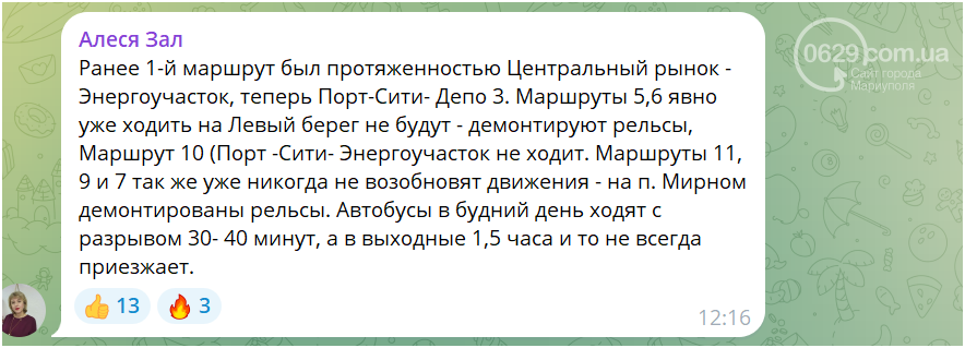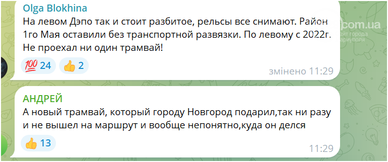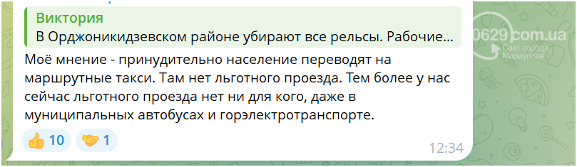 «Нет трамваев в Мариуполе, один недомаршрут и все», — пише одна з учасниць обговорення.