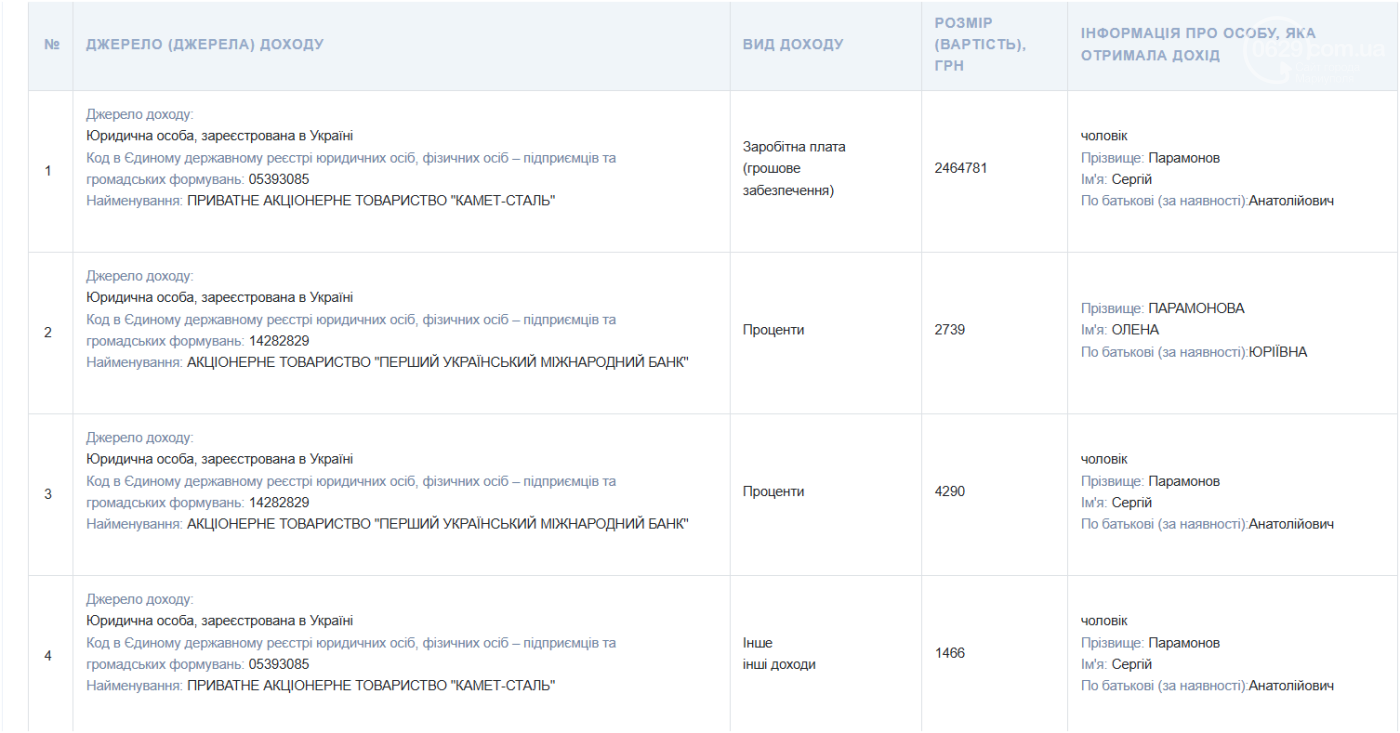 Скріншот декларації Олени Парамонової за 2024 рік