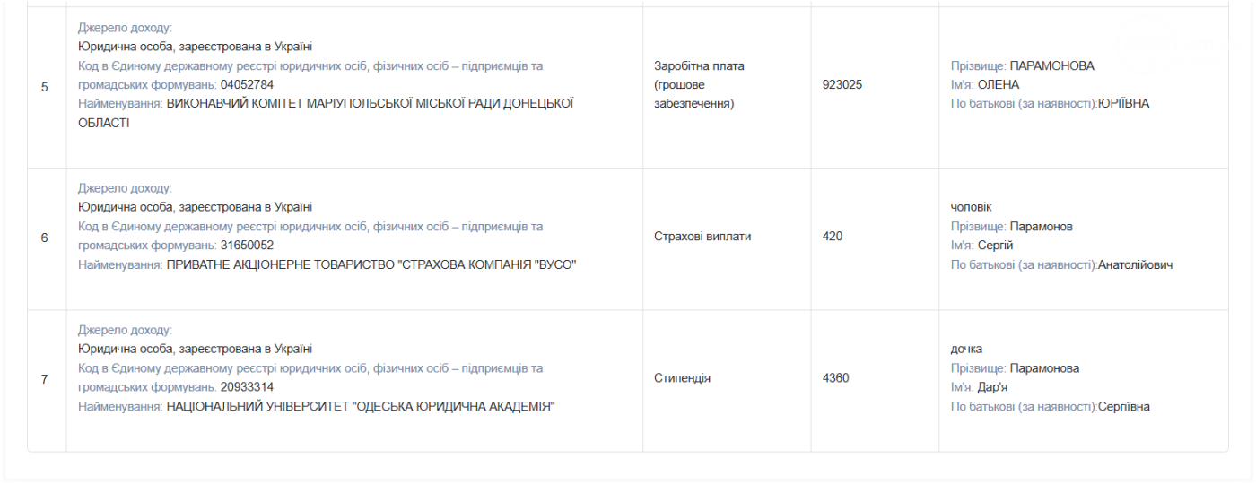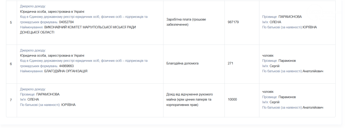 Заробітна плата самої Олени Парамонової у виконавчому комітеті Маріупольської міської ради у 2025 році склала 923 025 грн. У 2024 році вона була вищою — 987 179 грн.