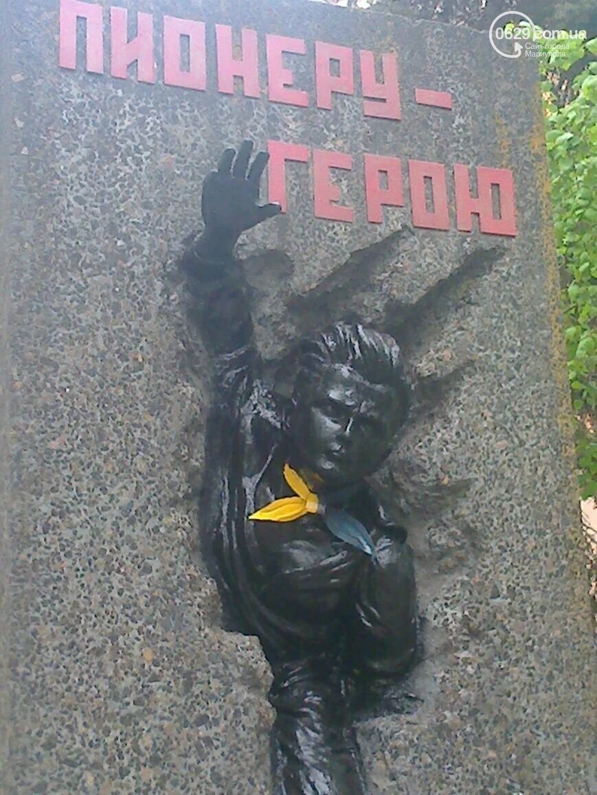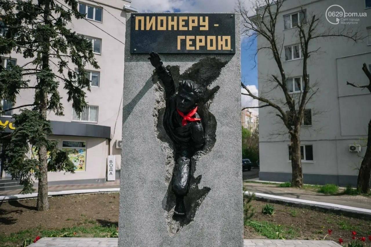 Монумент неодноразово змінювали і раніше. У 2010 році його реконструювали за кошти маріупольців, у 2015 році піонерську краватку перефарбували у кольори українського прапора, у 2021 році пам’ятник знову впорядкували.