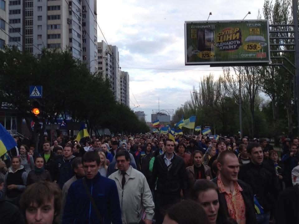 28 квітня у центрі Донецька зібралися кілька тисяч людей на мітинг «За єдину Україну». Колона рушила містом із прапорами, піснями та гаслами — це була ще одна спроба публічно заявити про українську позицію міста.