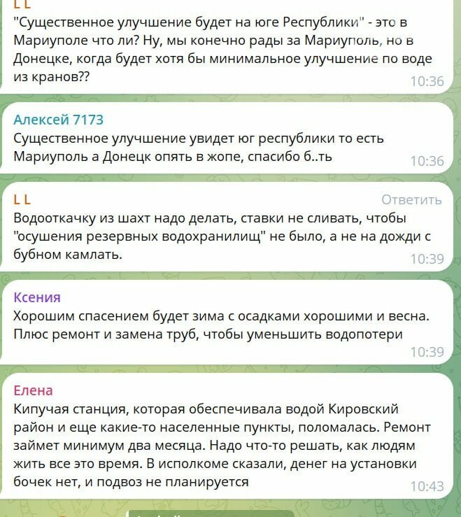 9 декабря на временно оккупированных территориях показали прямую линию с главой так называемой «Донецкой народной республики» Денисом Пушилиным. Жители Донецка и других городов в соцсетях окрестили ее «пустыми разговорами перед 19 декабря» — в канун дня Святого Николая по старому календарю. Во время трансляции в соцсети ВКонтакте сотни неудобных вопросов пользователей систематически удаляли модераторы, а после завершения эфира комментарии исчезли полностью. В Telegram критические реплики продержались дольше потому, что эфир публиковали фрагментами в разных пабликах, где опцию комментирования еще не успели закрыть.