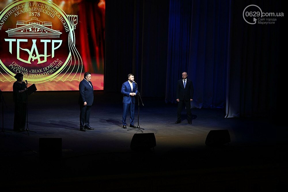 Официальным лицом открытия стал Денис Пушилин. В своем заявлении он сразу зафиксировал нужную оккупационным властям версию: назвал драмтеатр "взорванным украинскими боевиками" и подчеркнул, что "задачу восстановить" здание якобы поставил президент России.
