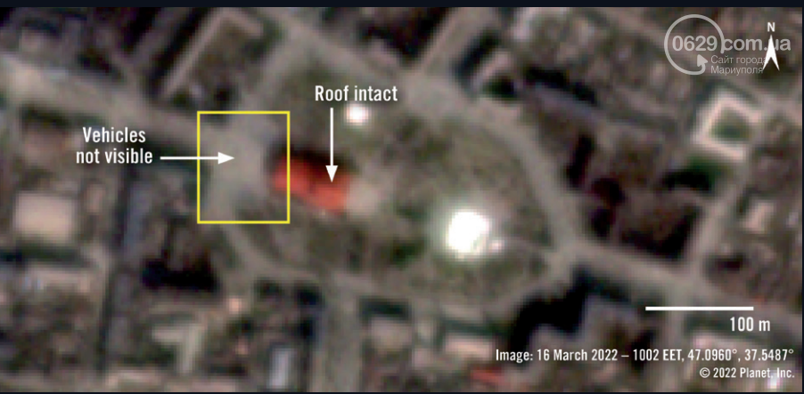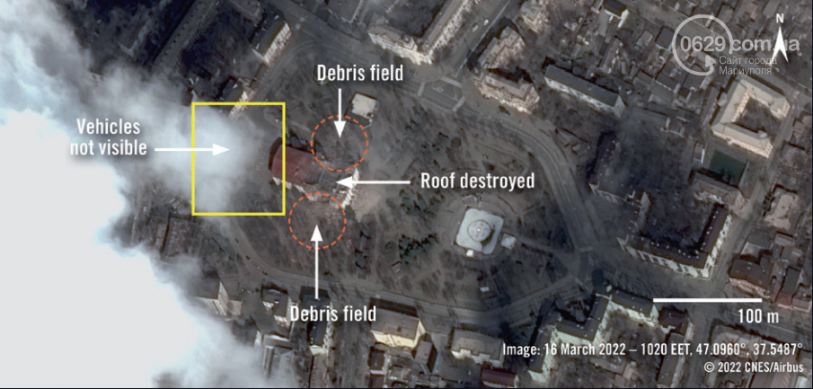 Спутниковые снимки драмтеатра/ Фото расследования Amnesty International