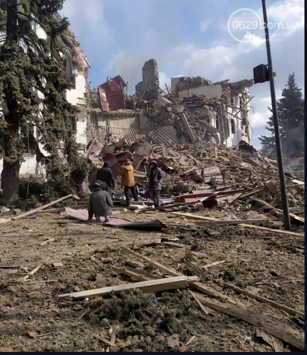 16 марта 2022 года по зданию драмтеатра был нанесен авиаудар. Центральная часть обрушилась, людей накрыло бетонными плитами. Часть погибла мгновенно, часть под завалами, некоторых извлекали живыми в течение следующих дней.