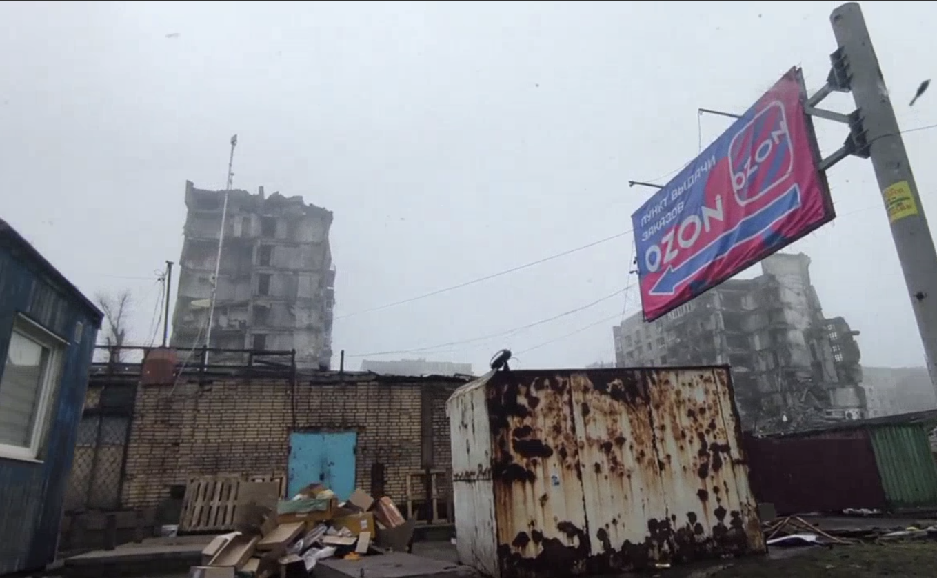 Многоэтажки в значительной степени разрушены и нет никаких признаков быстрого обновления. Но на видео и фото российских пропагандистов показывают преимущественно новые дома — несколько отреставрированных многоэтажек.