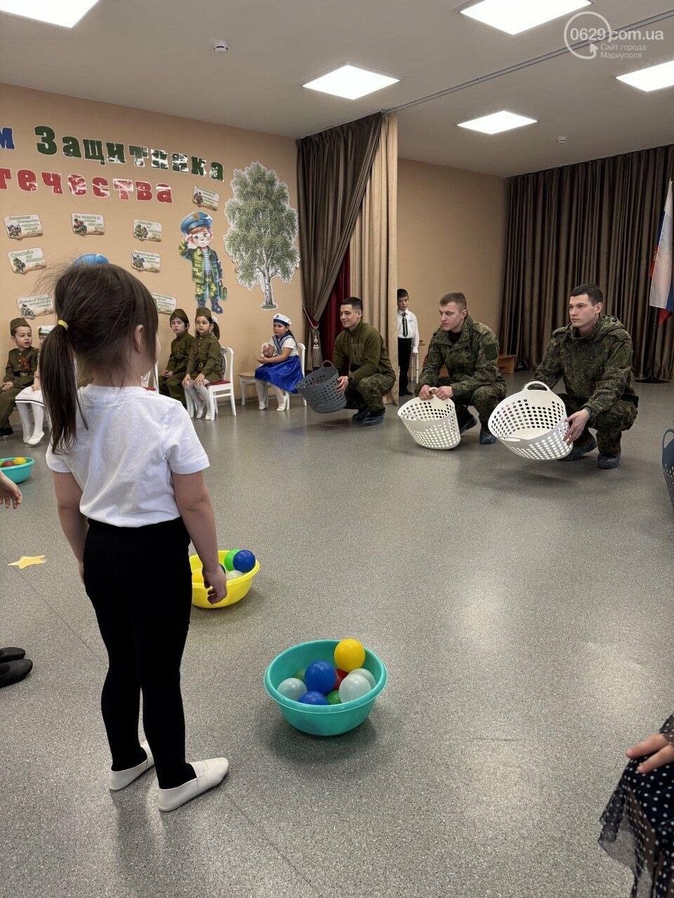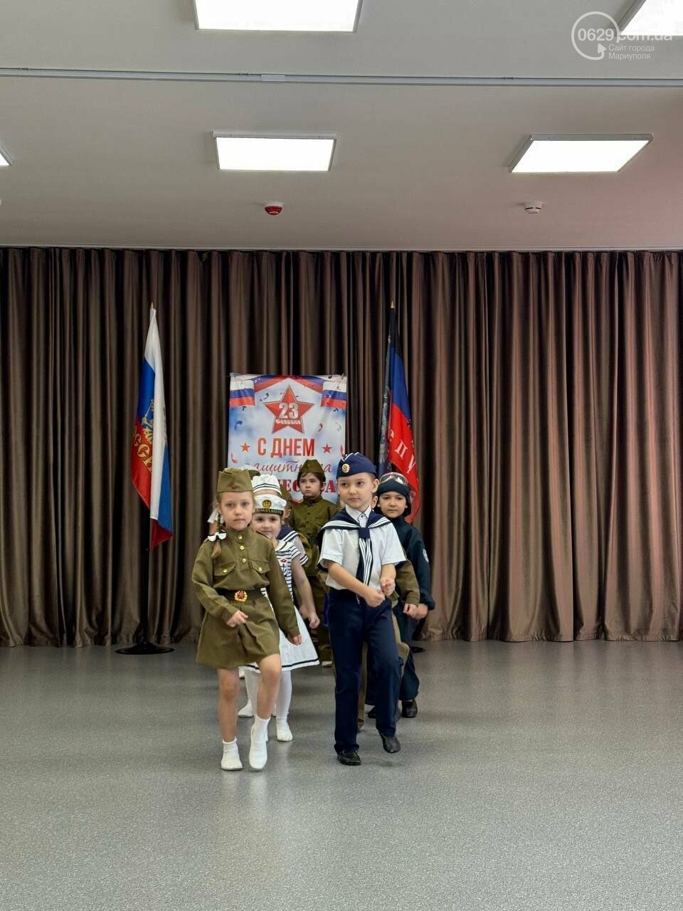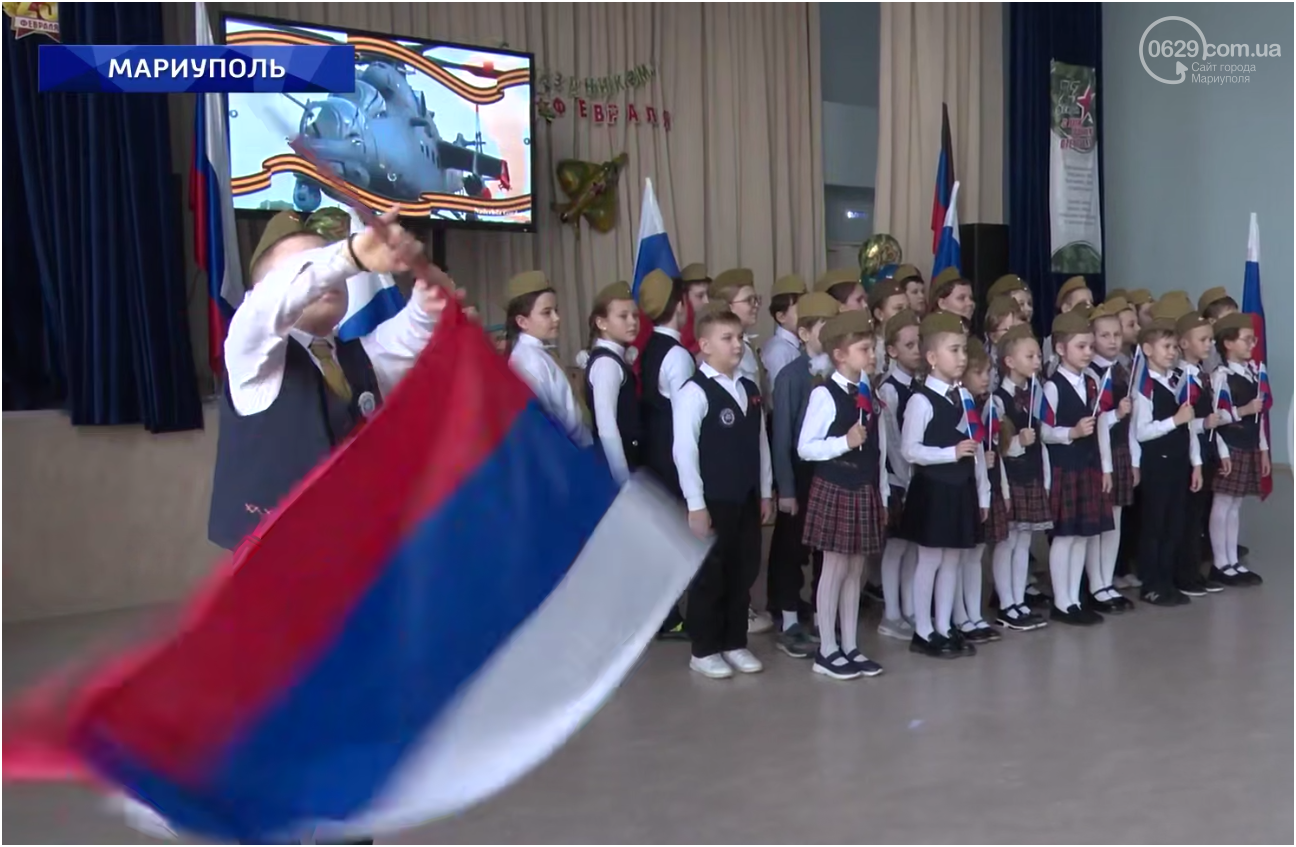 Сегодня, 23 февраля, страна-агрессорка отмечает так называемый «День защитника Отечества». В оккупированном Мариуполе это явилось поводом для серии пропагандистских мероприятий с участием детей. В разных районах города фиксируют акции, концерты и милитаризованные выступления, имеющие общую цель – формирование лояльности к оккупанту и его армии.