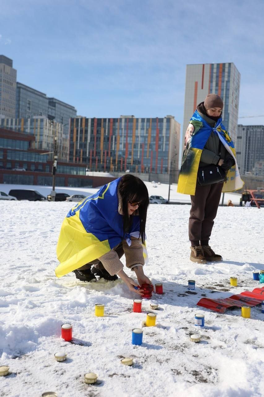 В Днепре к четвертой годовщине полномасштабного вторжения прошел автопробег. Инициатором мероприятия стала ОО «Крылья Ангела». Участники почтили память погибших минутой молчания, зажгли лампадки и положили их у надписи «Не имеем права забыть!».