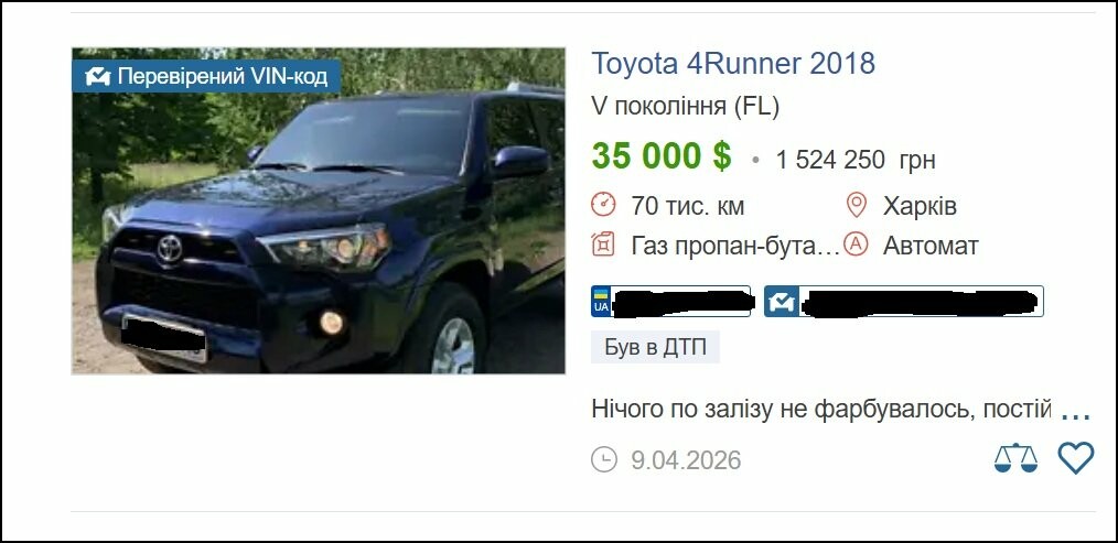 В то же время для понимания рыночной стоимости можно обратиться к актуальным предложениям: по состоянию на сегодняшний день аналогичные автомобилипродаютсяпримерно за 35 тысяч долларов (около 1,5 млн грн) в зависимости от состояния и пробега.